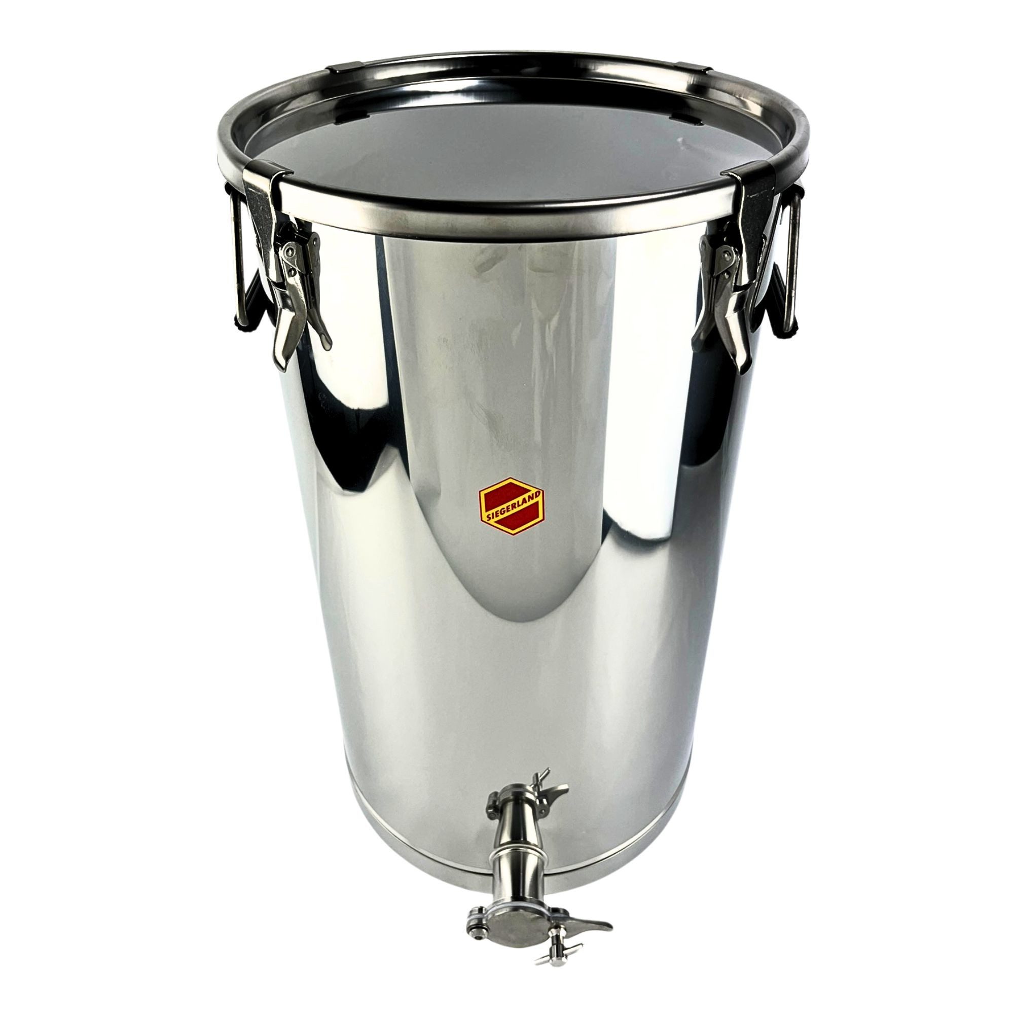 Ausstattung | Überlauf mit zweitem Auslaufhahn oben, Klemmdeckel mit Dichtring und Spannverschluss |