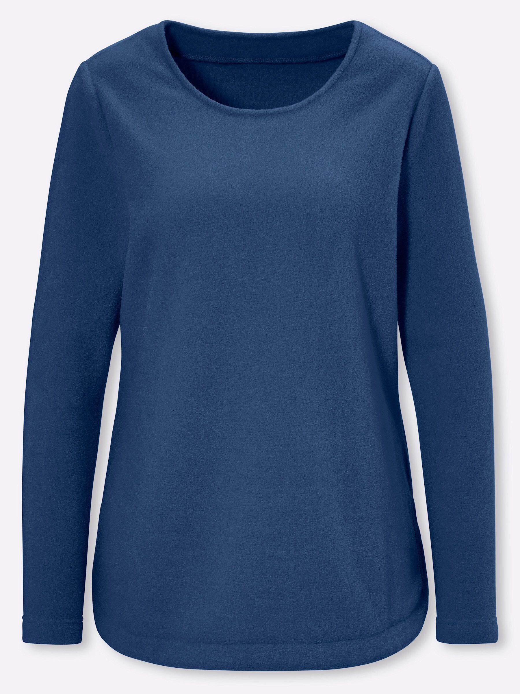 Bei meiner normalen Размер ist das Shirt leicht eng anliegend (bei 1m65 - Размер 50 kommt das Shirt bis zur Mitte des Pos, ich habe dickere Oberarme und Bauch, das Fleeceshirt engt jedoch nicht ein) Wer es etwas legerer und länger mag, soll eine Размер größer bestellen. Der Stoff ist schön leicht, etwas dick, dadurch schön warm, wirkt auch qualitativ hochwertig. Durch den einfachen Schnitt eher für Zuhause auf dem Sofa, aber sehr gemütlich und angenehm zu tragen.