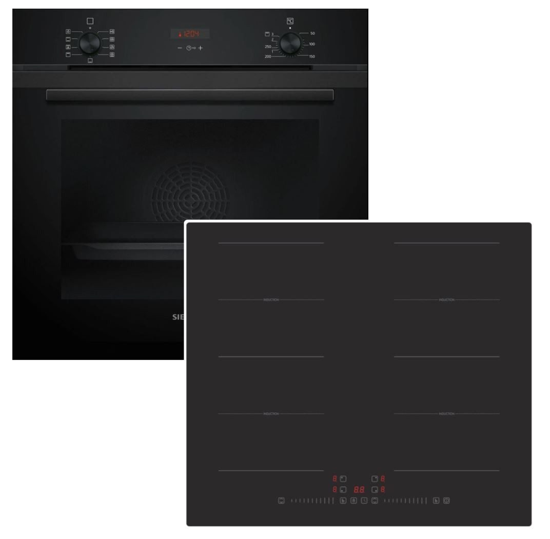 HERDSET Siemens Backofen mit PKM Induktionskochfeld 60 cm autark + Teleskopauszug + 3D-Heißluft