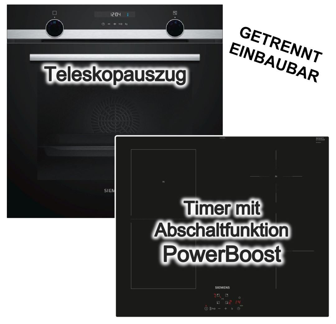 HERDSET Siemens Backofen mit Induktionskochfeld 60 cm autark + Teleskopauszug + 3D-Heißluft