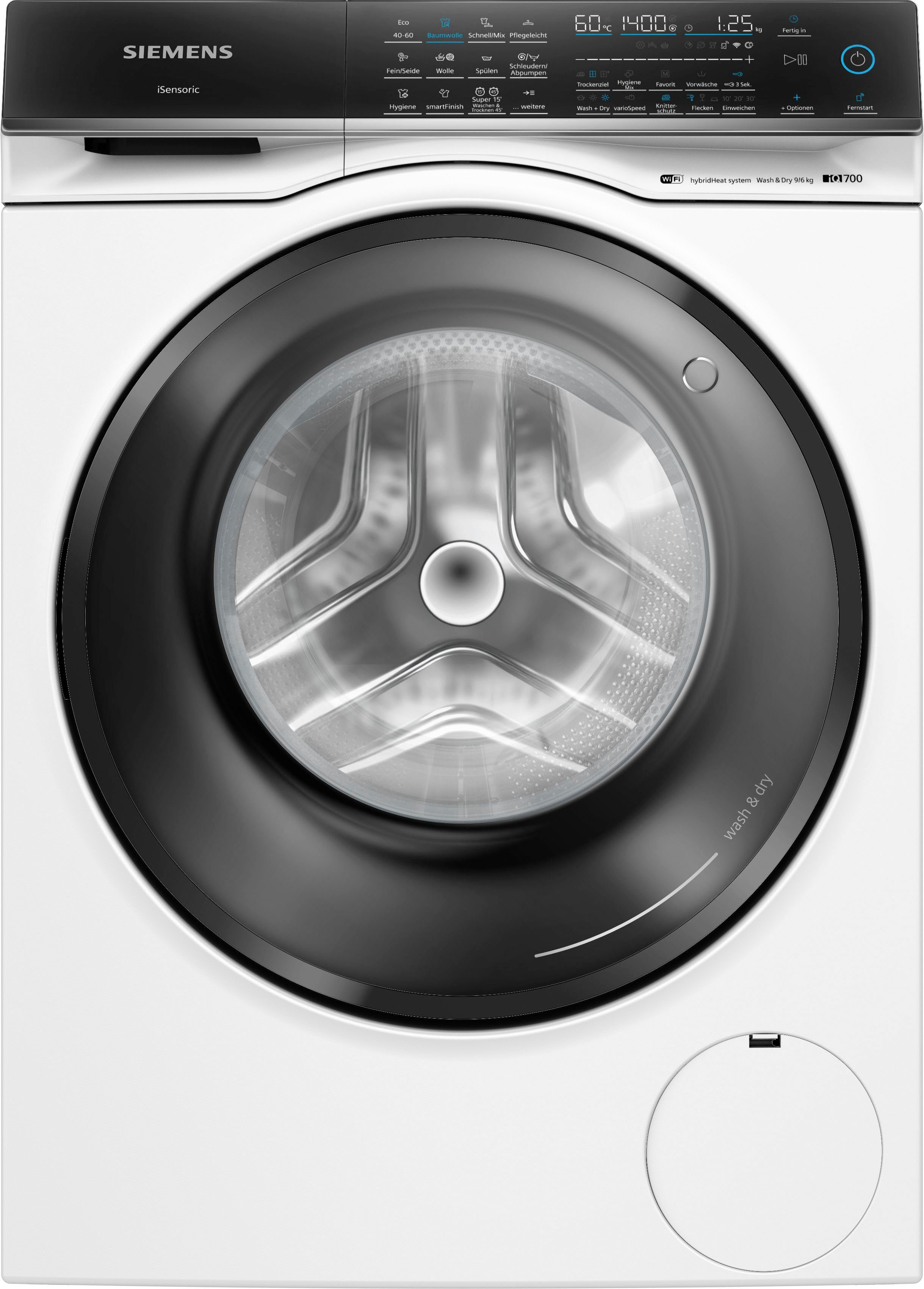 Zusatzfunktionen | Beladungserkennung Kindersicherung Knitterschutz Nachlegefunktion Schaumerkennung Signalton am Programmende Variable Schleuderdrehzahl appfähig |
