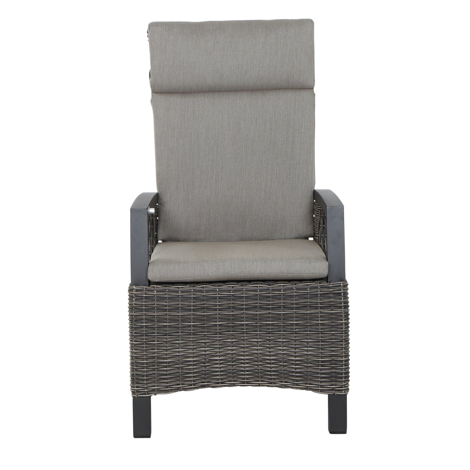 Der Diningsessel “Corido” der Marke Siena Garden besticht durch Funktionalität, eine moderne Optik sowie höchsten Sitzkomfort. Die Rückenlehne lässt sich mittels eines Hydrauliksystems stufenlos verstellen. So können Sie die Sitzposition ganz nach Ihren individuellen Wünschen wählen. Die passende Auflage ist im Lieferumfang inbegriffen. Der Sessel steht in zwei Вариантыn zur Auswahl: Geflecht charcoal grey mit Auflage taupe meliert sowie Geflecht ice grey mit Auflage anthrazit.
