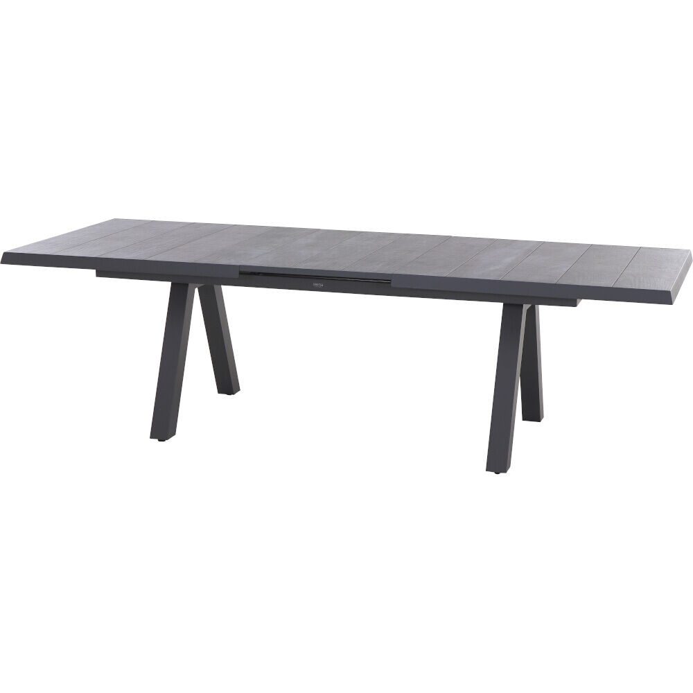 Artikelnummer: 34766 Eleganter Ausziehtisch für den Außenbereich: Robust, stilvoll und vielseitig Verleihen Sie Ihrem Außenbereich das gewisse Etwas mit dem hochwertigen Ausziehtisch TIRANA von SIENA GARDEN. Dieser elegante Tisch überzeugt nicht nur durch sein modernes Design in matt anthrazit, sondern auch durch seine durchdachten Funktionen und hochwertigen Materialien, die ihn zum idealen Begleiter für gesellige Stunden im Freien machen. Das robuste Gestell aus pulverbeschichtetem Aluminium sorgt für Stabilität und Langlebigkeit. Die spezielle Pulverbeschichtung schützt vor Korrosion und macht den Tisch wetterfest, sodass er problemlos ganzjährig im Freien genutzt werden kann. Die Tischplatte besteht aus 10 mm starkem Keramik in der Farbe "wood grey" und ist nicht nur optisch ein Hingucker, sondern auch kratzfest, pflegeleicht und äußerst strapazierfähig. Mit einer ausziehbaren Длина von ca. 200 cm bis zu ca. 260 cm bietet der TIRANA Ausziehtisch Platz für bis zu 10 Personen und eignet sich somit ideal für Familienfeiern, Gartenpartys oder ein gemütliches Essen mit Freunden. Dank seiner intelligenten Konstruktion lässt sich der Tisch leicht vergrößern und an Ihre Bedürfnisse anpassen. Die Maße des Tisches betragen ca. 100 cm in der Breite und ca. 77 cm in der Höhe, was ihn auch für kleinere Terrassen oder Gärten perfekt macht. Praktische Details wie die schwarzen Kunststoff-Fußkappen schonen empfindliche Böden und sorgen für einen sicheren Stand. Die Unterschubhöhe von ca. 65,5 cm garantiert bequemes Sitzen und passt sich verschiedenen Sitzgelegenheiten an. Der Tisch wird zerlegt geliefert, kann jedoch mit geringem Montageaufwand schnell aufgebaut werden. Die klaren Linien, die harmonische Farbkombination und die durchdachte Funktionalität machen den Ausziehtisch TIRANA zu einem echten Highlight in Ihrem Garten oder auf Ihrer Terrasse.