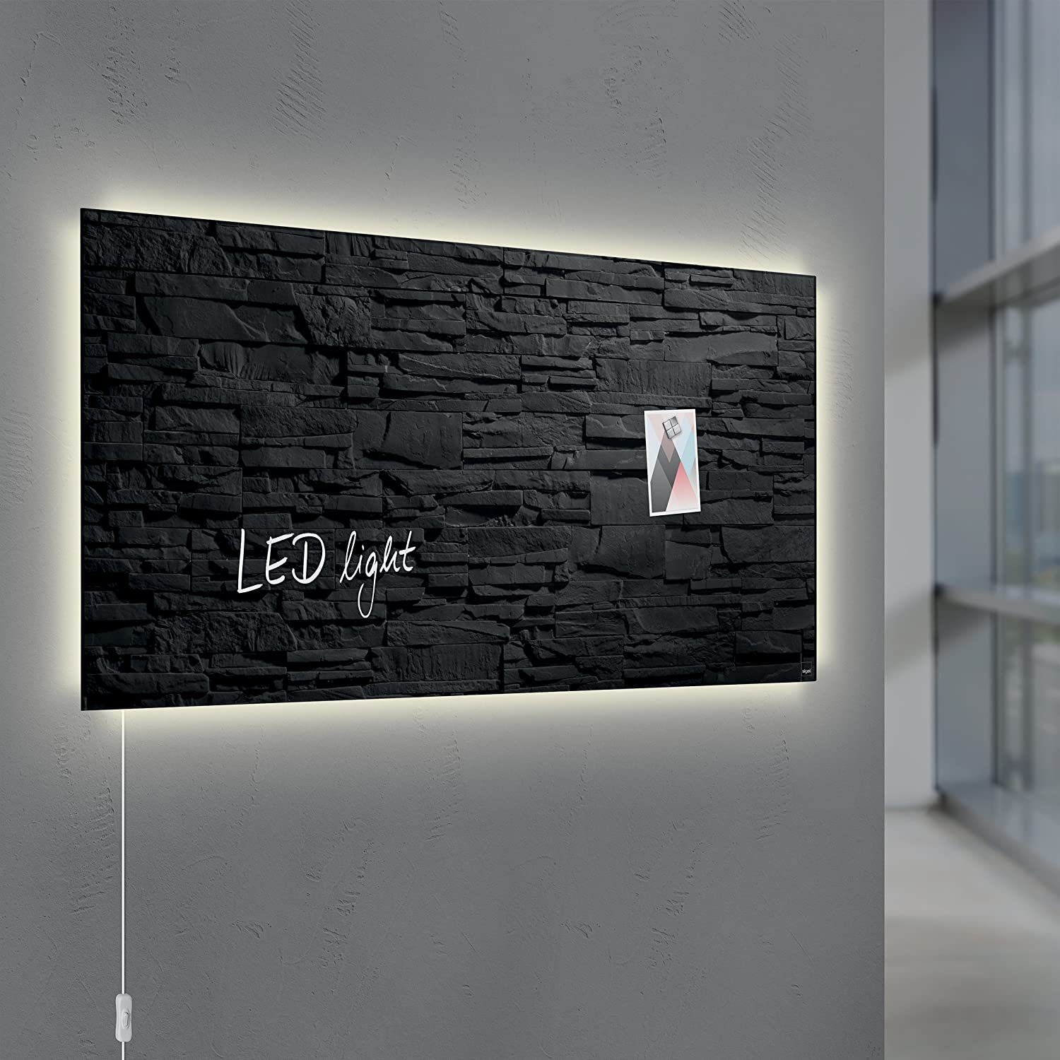 Glas-Magnetboard Artverum LED light, Design Schiefer-Stone, 91 x 46 cm - GL407