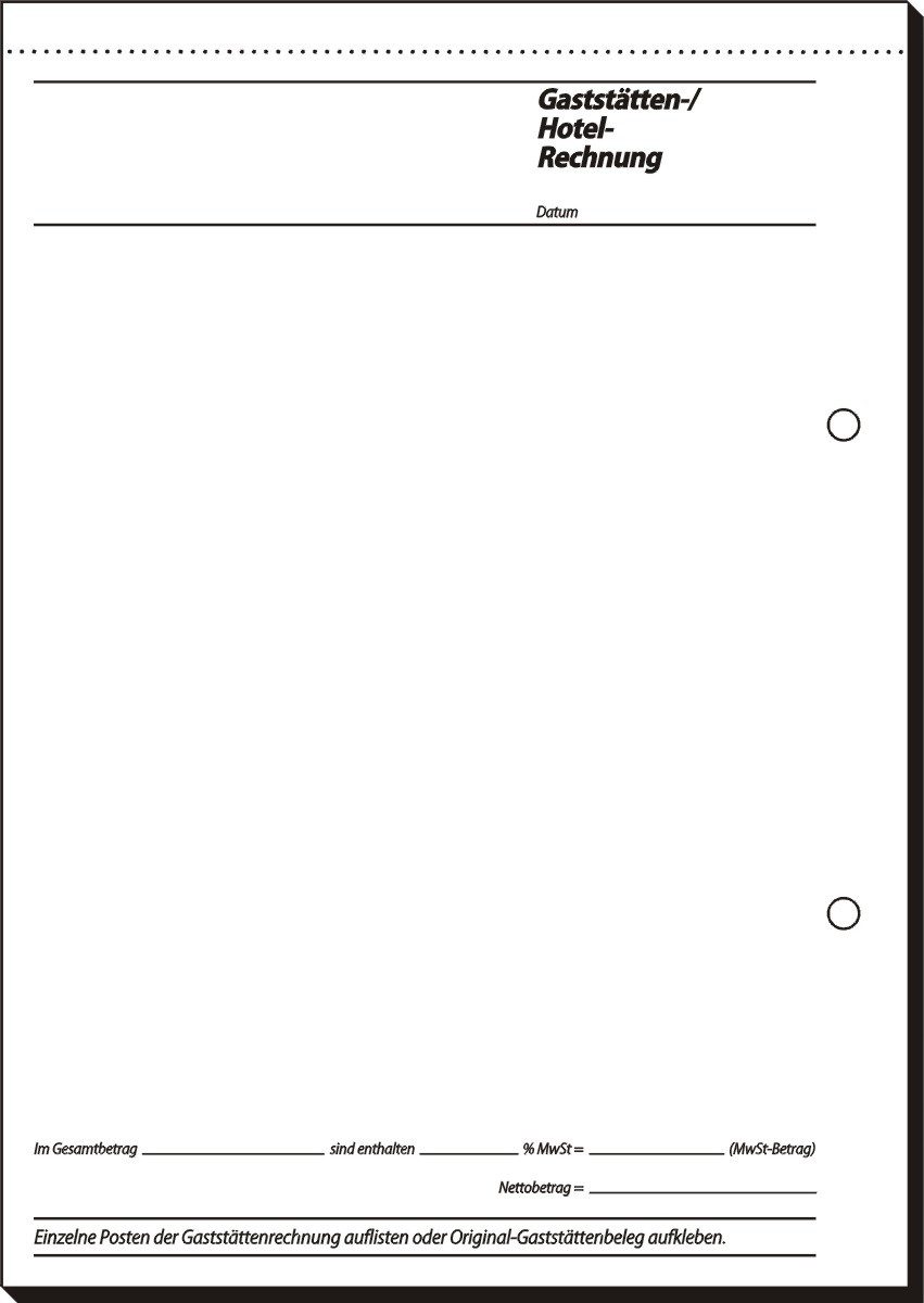 • Ausführung: 2seitig bedruckt, Rückseite Gaststättenrechnung