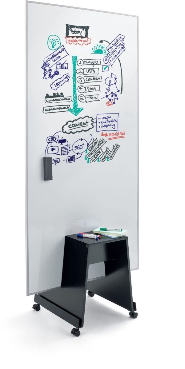 • Einzigartiges mobiles Multifunktionsboard Meet up zum Beschreiben mit non-permanenten Markern und Bekleben mit Haftnotizen, leicht trocken und feucht abwischbar, statisch haftend
