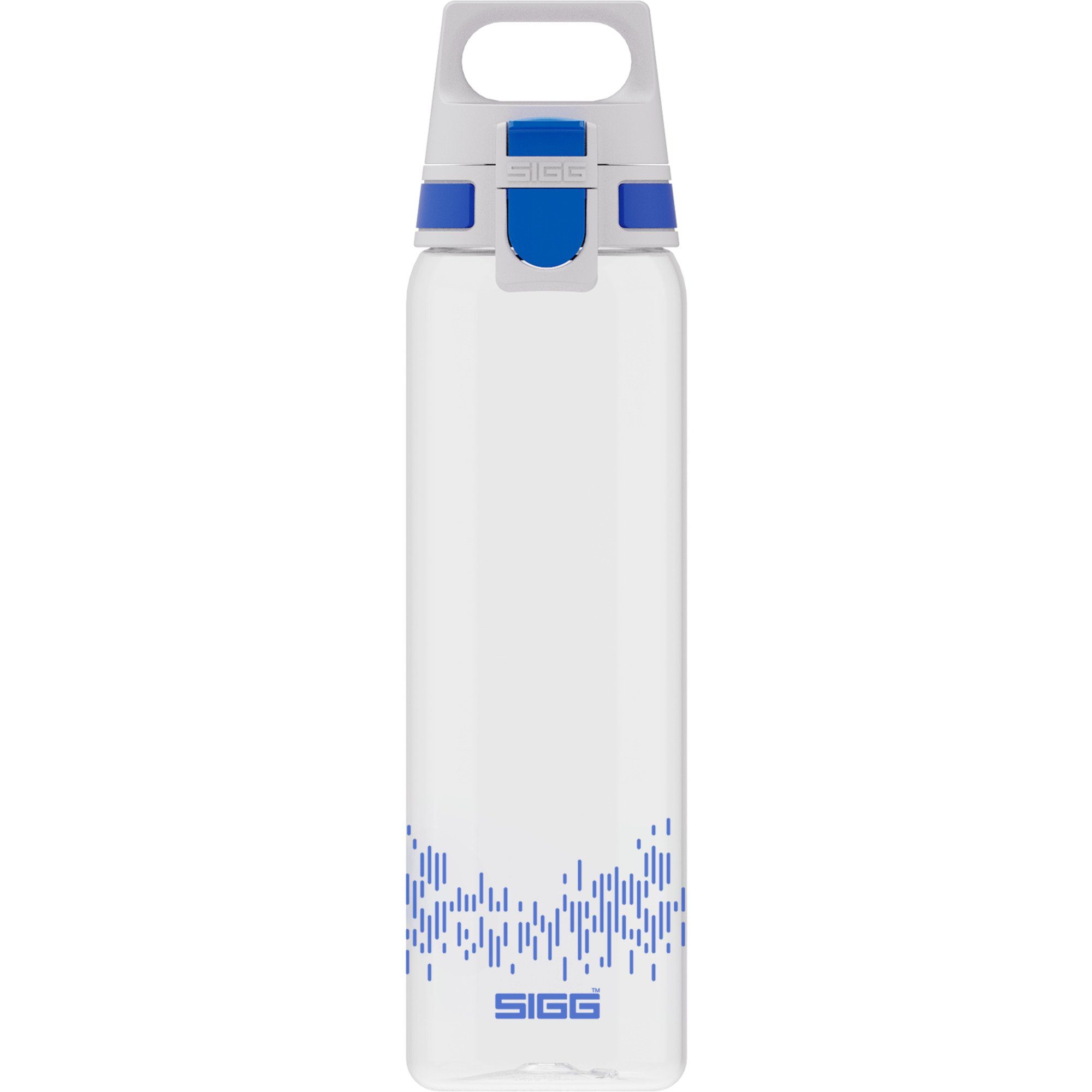 Ein-Hand-Verschluss ONE Die Trinkflasche Total Clear One MyPlanet von SIGG in der Farbe "Blue" überzeugt durch kratzresistente Klarheit, robuste Langlebigkeit und einem praktischen Verschluss. Dank dem innovativen ONE (Ein-Hand)-Verschluss mit extra großer Öffnung ist die Trinkflasche extrem komfortabel: Tragen, Öffnen, Trinken, Спрятать und Sichern funktionieren bequem mit nur einer Hand. Auch das Befüllen und Reinigen sind ein Kinderspiel. SIGG sorgt schon bei ihrer Herstellung dafür, dass Kunststoff im Umfang von 50% des Flaschengewichts in neuen Konsumgütern wiederverwertet wird. Schritt für Schritt zum Recycling-Glück mit Tritan Renew, einer neuen Technologie, die auf molekulares statt mechanisches Recycling setzt und Kunststoff in Kreisläufen leben statt in Sackgassen enden lässt. Das spart Einwegabfälle und Treibhausgasemissionen und investiert dank kleinerem CO2-Fußabdruck in eine nachhaltige Zukunft. Die Flasche Total Clear One MyPlanet ist geschmacks- und geruchsneutral, spülmaschinenfest, auslaufsicher und natürlich frei von östrogenaktiven Substanzen und Phthalaten, für einen sicheren Trinkgenuss.