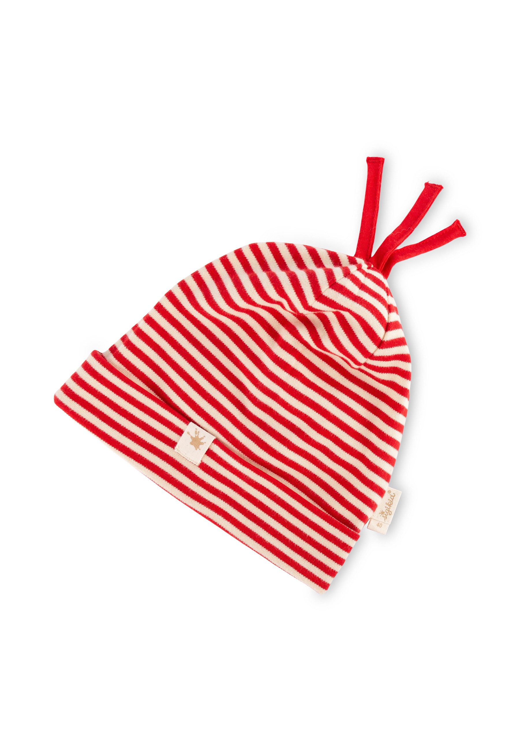 Applikationen | drei rote Dekobändchen; Patch mit sigikid-Klecks; Fähnchen mit sigikid-Schriftzug |
