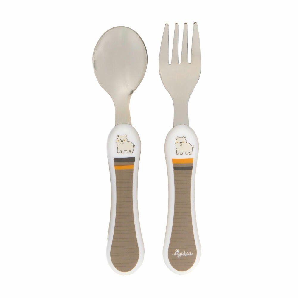 - Altersempfehlung: 0 - 36 Monate - Besteckset für Babys und Kleinkinder - bestehend aus Löffel und Gabel - perfekt für erste eigenständige Essversuche - Kindgerechte Form: die Griffe sind breit genug und so geformt, dass Kinder das Besteck sicher halten und zum Mund führen können - Rostfreier Edelstahl am vorderen Teil des Bestecks - Robustes Melamin für die Griffe - Spülmaschinengeeignet