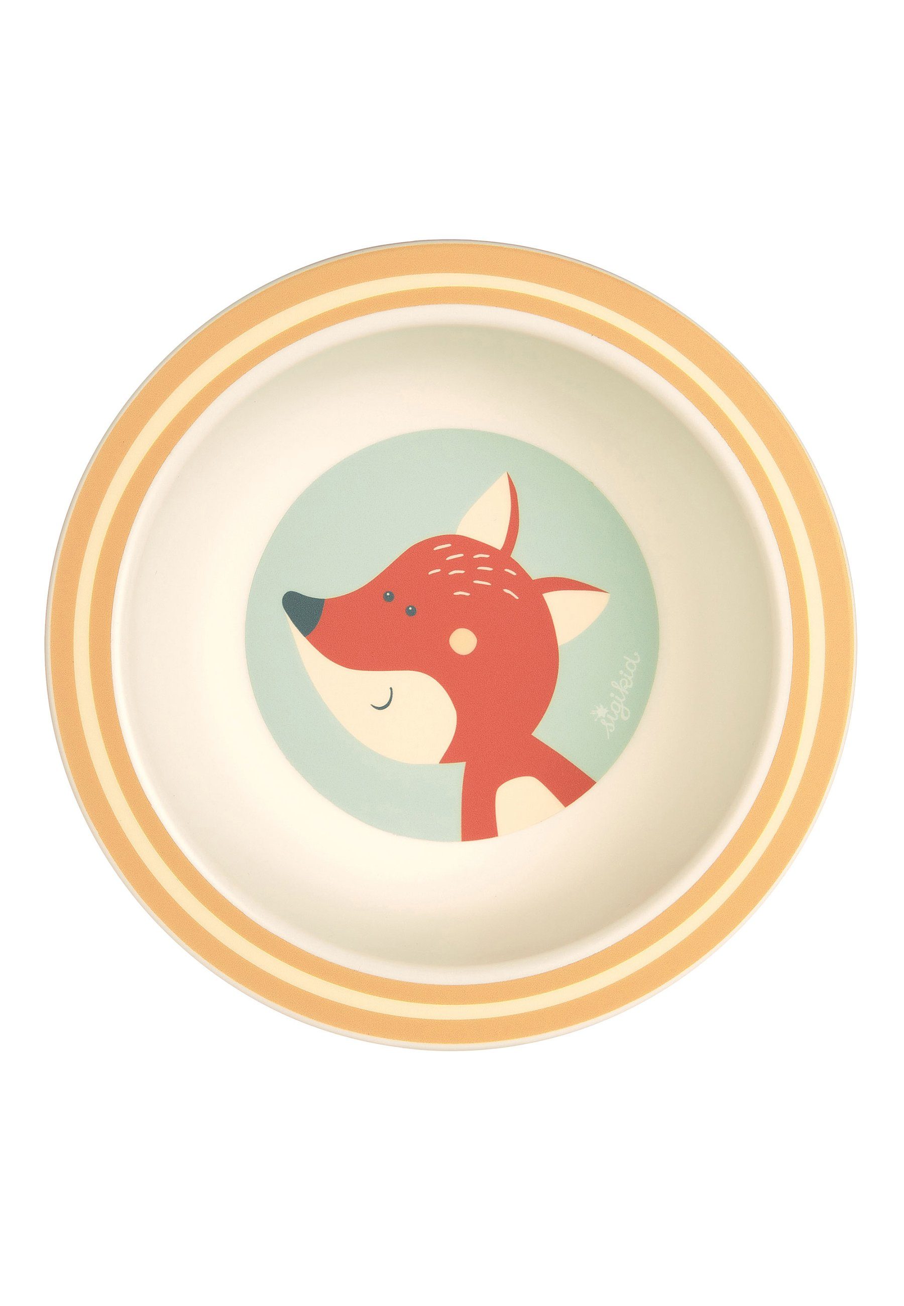 Die Schüssel mit Fuchs-Dekor in ansprechenden Farben Mint und Goldgelb wird für Kinder von 2 bis 8 Jahren empfohlen. Mit einem Durchmesser von 15,5 cm ist sie gut geeignet für das Müsli am Morgen, eine Suppe am Mittag, einen Snack am Nachmittag oder den Brei am Abend. Der Gummiring am Boden des Schälchens macht das Gefäß rutschfest und sorgt somit für guten Halt auf dem Tisch – perfekt für selbständige Mahlzeiten kleiner Kinder. Zu der Geschirr-Serie „4 Freunde“ gehören ebenso Tassen, Teller und Besteck im passenden Design. Die hübsche Kinderschüssel ist praktisch, sicher und langlebig. Sie bringt Farbe auf den Tisch und sorgt für Spaß beim Essen. Sie besteht zu 100% aus rPET. Dieses Material wird direkt aus Kunststoffen/PET recycelt, welche in der Industrie bei der Produktion anfallen. So möchten wir qualitativ hochwertiges Recycling und Kreislaufwirtschaft fördern. Das Material ist sehr robust, aber nicht komplett unzerbrechlich. Die Tasse ist für die Reinigung in der Spülmaschine und für die Verwendung in der Mikrowelle geeignet – bitte hierzu unsere Gebrauchsanleitung beachten. Der Silikonring im Boden kann zur gründlichen Reinigung entnommen werden. Das Geschirr ist selbstverständlich frei von Weichmachern und nach dem Lebensmittel- und Bedarfsgegenständegesetz (kurz: LFGB) und nach DIN EN 14350 geprüft. sigikid legt besonderen Wert auf ausgesuchte Materialien und durchdachtes Design. Um die Sicherheit unserer Produkte zu gewährleisten, werden von akkreditierten Prüfinstituten regelmäßig Prüfungen gemäß dem aktuell geltenden (europäischen) Recht durchgeführt. Die Marke sigikid steht für kindgerechte Produkte, die Emotionen wecken und Eltern und Kindern gleichermaßen ein gutes Gefühl vermitteln. Seit über 55 Jahren folgt sigikid einem klaren Leitsatz: FIRST CLASS FOR KIDS! Wir machen die Welt von Familien von Anfang an kuscheliger und bunter.
