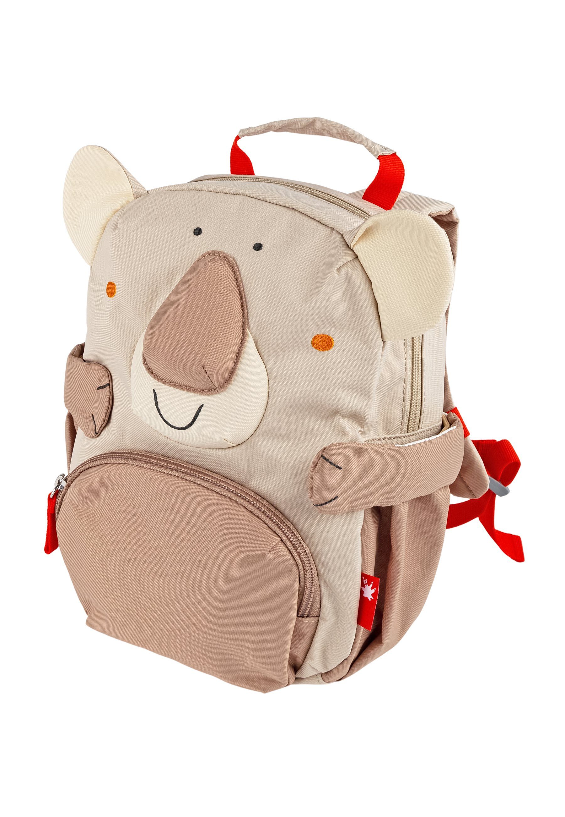 Die bunten Rucksäcke im frechen Tier-Design sind für kleine Jungen und Mädchen der ideale Begleiter für unterwegs – egal ob für die Krippe, Kindergarten oder den Familienausflug. Die extravagante Kindertasche mit Koala-Design in Grau und Taupe bietet ausreichend Platz für eine Brotzeitbox, Trinkflasche, ein Kuscheltier oder andere wichtige Utensilien. Das große Hauptfach ist mit einem Doppelreißverschluss versehen, der sich leichtgängig öffnen und schließen lässt. Seitlich sind zwei Einschubtaschen angebracht, die z.B. Trinkflaschen aufnehmen können. Besonders witzig: Eins der Ärmchen, die um die seitlichen Taschen befestigt sind, lässt sich anhand des Klettverschlusses öffnen. Dahinter befindet sich das Namensschild, auf dem der kleine Besitzer vermerkt werden kann. Schnellen Zugriff bietet die farblich abgesetzte Fronttasche; auch sie ist mit einem Reißverschluss versehen. Der Koala-Rucksack mit den gepolsterten Schultergurten passt ideal auf einen Kinderrücken. Für perfekten Sitz sorgen verstellbare Schulterriemen und ein zusätzlicher, einstellbarer Brustgurt mit Clip-Verschluss. Dieser verhindert ein Abrutschen der Schultergurte. Damit die Kindergartentasche auch gut an einem Haken befestigt werden kann, verfügt sie über einen weiten Tragegriff. Das strapazierfähige Gewebe aus Polyester ist äußerst robust und schmutzabweisend und frei von chemischen Gerüchen. Sollte er schmutzig werden, so kann man den schönen KITA-Rucksack ganz einfach mit einem feuchten Tuch abwischen. Mit seiner Размер von 26x22x21 cm und einem Volumen von 5,2 Liter ist der Rucksack der perfekte Begleiter für Kinder ab 2 bis 5 Jahren!