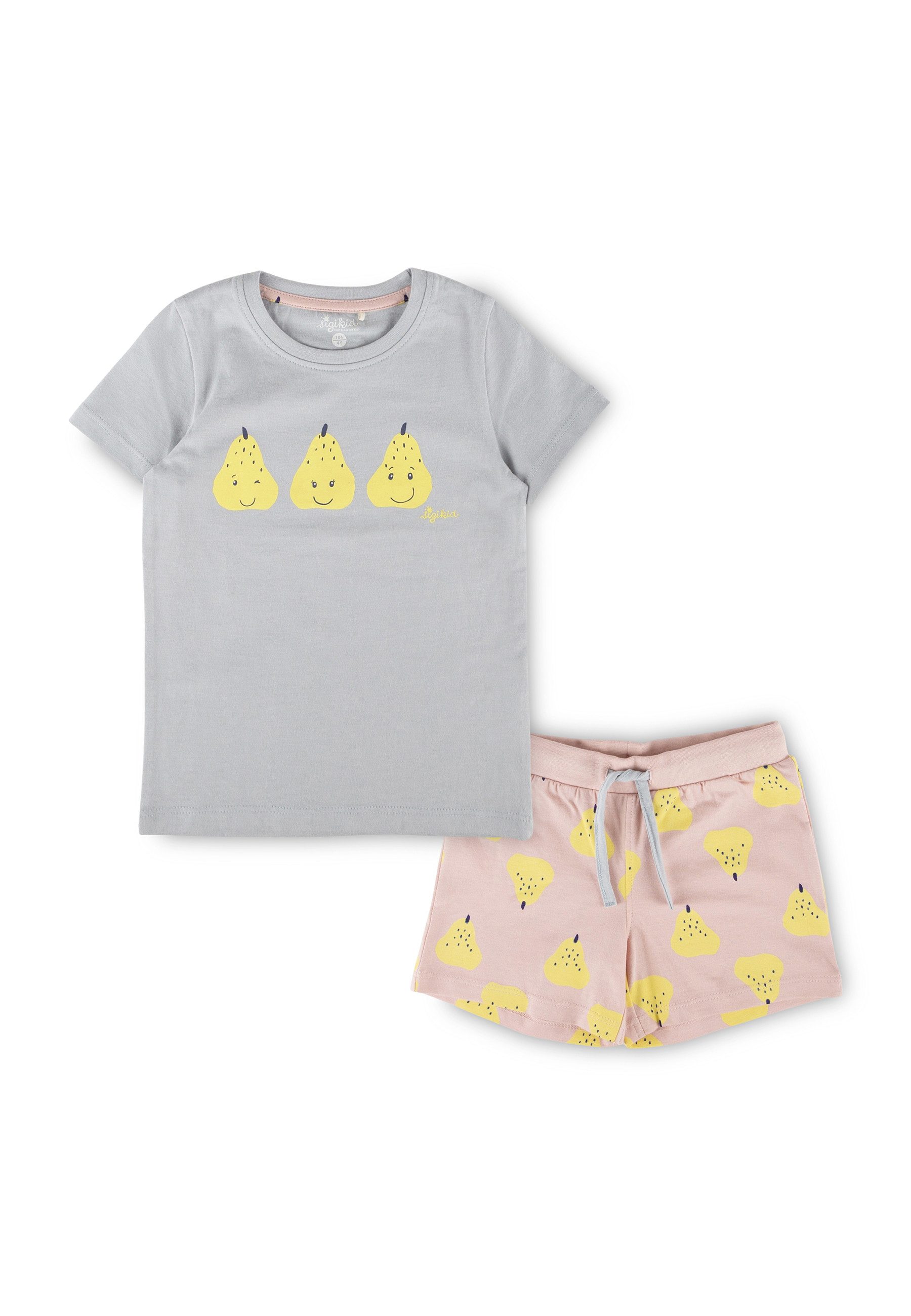 Applikationen | Oberteil: aufgdruckte Birnen, Hose: mit Alloverprint, garngefärbt |