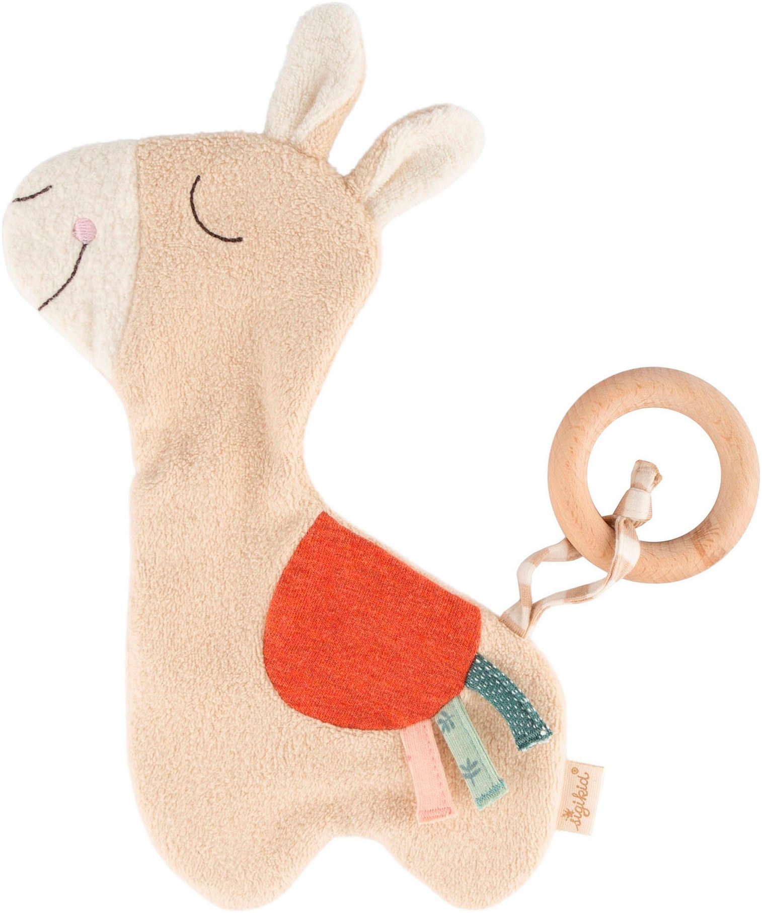 Ein Hauch von Zartheit in einem feinen Ecru, kombiniert mit sanften Streifen oder zurückhaltenden Mustern. Die Vanilla-Edition ist für Liebhaber von zarten Pastelltönen, die Design im Minimalismus sehen, aber dennoch für Kinder ausdrucksstarke Artikel suchen. Bezaubernd schön, zeitlos und mit stilvollen Designobjekten fürs Kinderzimmer. Das hübsche Knistertuch Lama mit dem niedlichen Gesicht lädt zum Schnuffeln, Entdecken und Träumen ein. Die unterschiedlichen Materialien wie Teddy und Jersey und die Knisterfolie im Inneren sind immer wieder interessant zum Befühlen - wunderbar weich zum Ankuscheln und Nuckeln ist das Lama natürlich auch! Mit Öhrchen, Bändchen und abnehmbaren Holzring - zum Greifen, Festhalten und Nuckeln. Sollte das Tuch beim Einsatz schmutzig werden, so kann man es in der Waschmaschine bei 30 °C waschen. Es hält auch häufiger Wäsche stand. Den Holzring bitte vor der Wäsche abnehmen. sigikid legt besonderen Wert auf ausgesuchte Materialien und durchdachtes Design. Sicherheit wird bei sigikid großgeschrieben: Das Halstuch ist daher selbstverständlich fest am Kuscheltier vernäht. Um die Sicherheit unserer Produkte zu gewährleisten, werden von akkreditierten Prüfinstituten regelmäßig Prüfungen gemäß dem aktuell geltenden (europäischen) Recht durchgeführt. Die Marke sigikid steht für kuschelige Produkte, die Emotionen wecken und Eltern und Kindern gleichermaßen ein gutes Gefühl vermitteln. Seit über 55 Jahren folgt sigikid einem klaren Leitsatz: FIRST CLASS FOR KIDS! Wir machen die Welt für Familien von Anfang an kuscheliger und bunter.