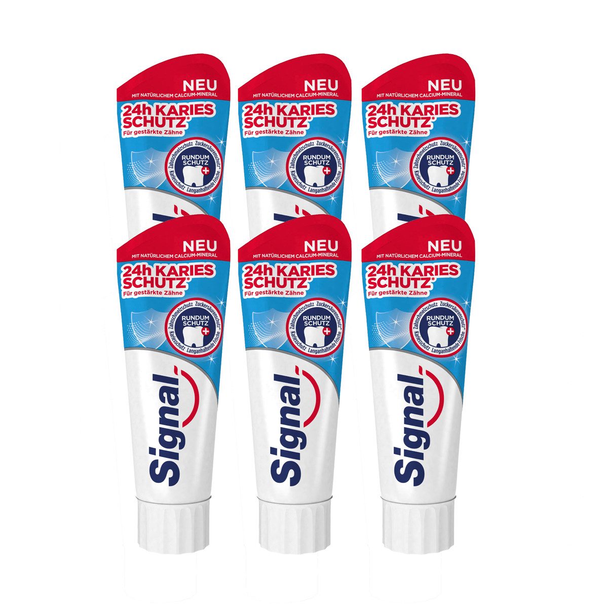 Signal Zahnpasta 24h Kariesschutz schützt aktiv vor Karies und sorgt für gestärkte Zähne.