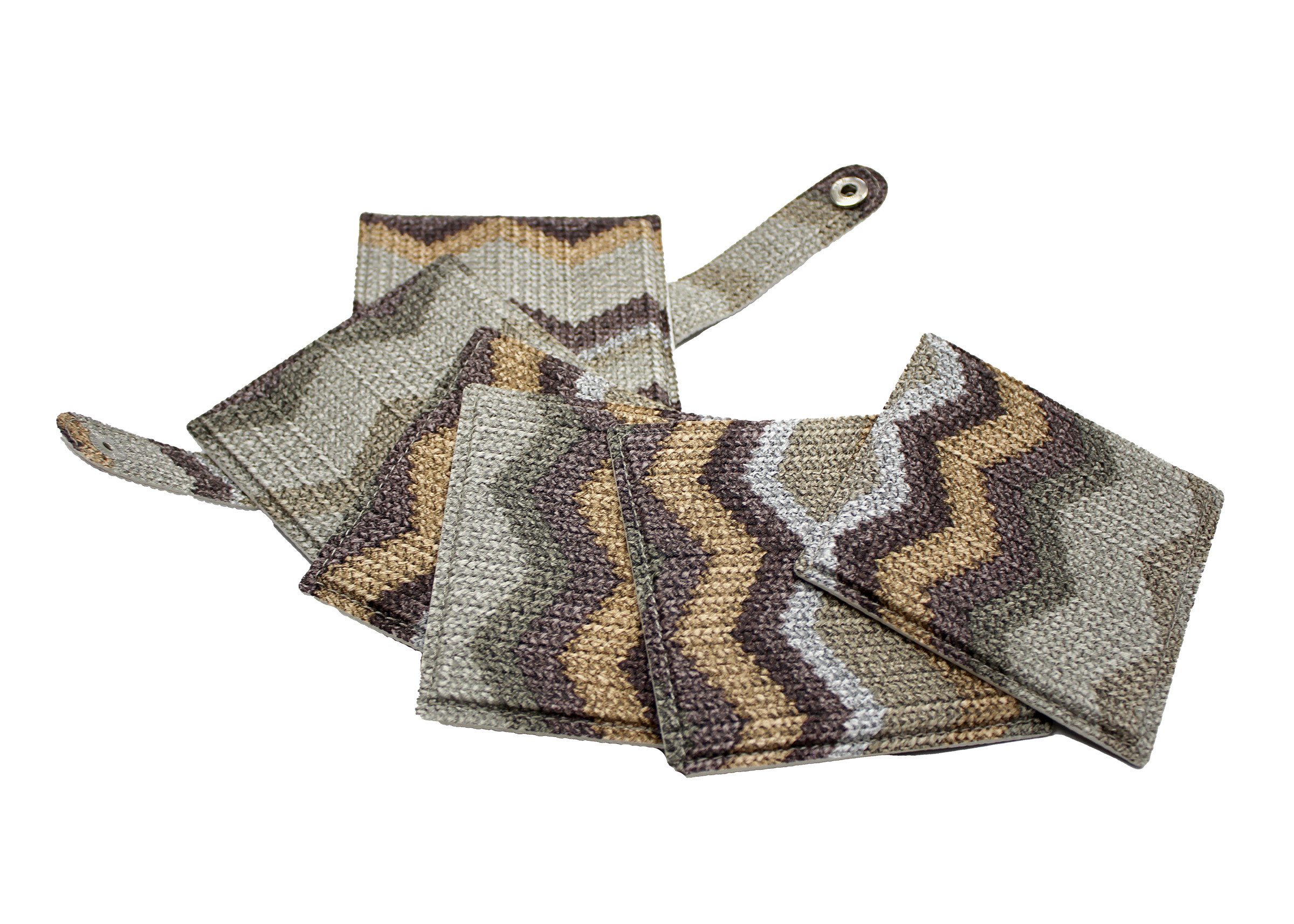 Nie mehr Glasränder auf dem Tisch. Die schicken Glasuntersetzer in braunem Kunstleder in Zickzack Muster schaffen Abhilfe und sind zudem eine pflegeleichte Alternative zu herkömmlichen Stoffuntersetzern, da sie abwischbar und pflegeleicht sind. Die hochwertigen Untersetzer sind außerdem beidseitig verwendbar und an den Kanten zudem aufwendig vernäht, was eine lange Lebensdauer garantiert. Wir legen großen Wert auf Qualität - deshalb werden die Glasuntersetzer innerhalb Europas in Handarbeit gefertigt.