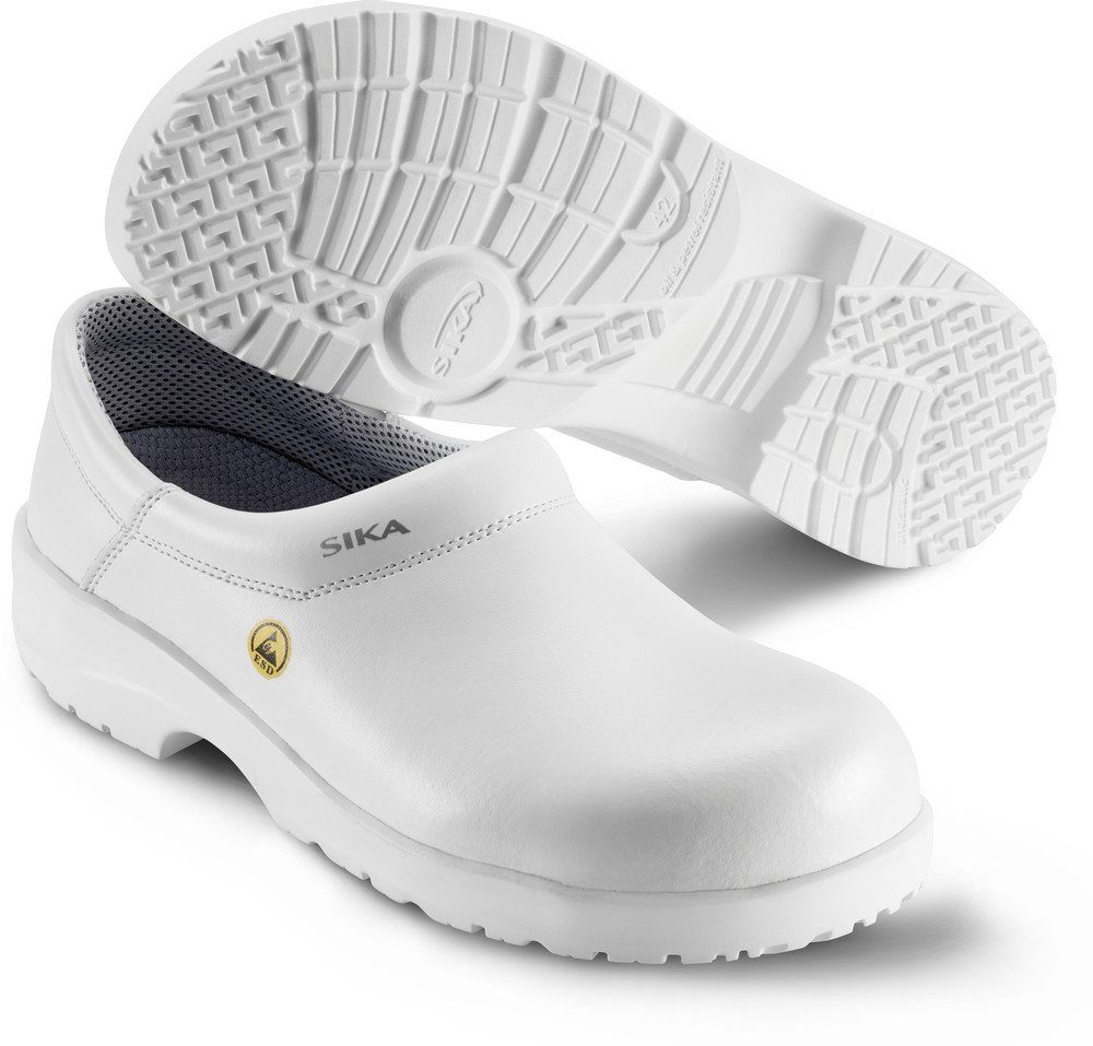 Super leichter und komfortabler Clog aus atmungsaktivem und strapazierfähigem Permair® Leder. Besonders rutschhemmende und stoßabsorbierende Laufsohle. Der Aufbau der Sohle sorgt für Stabilität und mindert das Risiko von Verletzungen durch Umknicken des Fußes. Mit auswechselbare Einlegesohle aus atmungsaktivem und schweißtransportierendem Material mit hochwertigen Eigenschaften - waschbar bei 30 °C. Futter aus schweißabsorbierendem, atmungsaktivem, strapazierfähigem und schnell trocknendem Politex. Erhältlich in den Farben schwarz und weiß. ESD-zugelassen