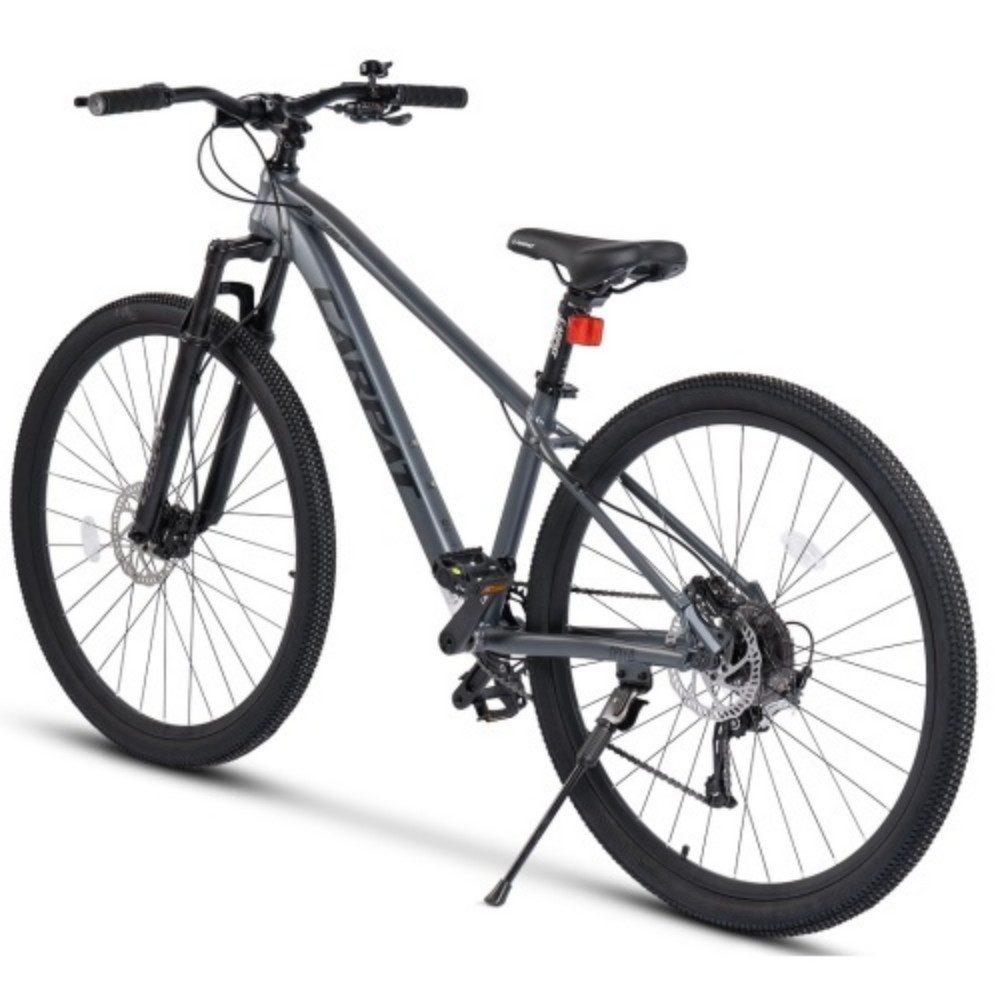 All-Terrain-König29-Zoll-Laufräder + 2,1-Zoll-All-Terrain-Reifen & 80mm-Federgabel meistern felsige Pfade, Schlamm und Waldtrails. Ideal für Erwachsene (175-190cm) auf Offroad-Touren. Präzises SchaltsystemShimano 1x9-Gang-Schaltung (Altus-Schaltwerk + Alivio-Schalthebel) – vereinfachtes Klettern an Steigungen & rasanter Kurvenfahrten. Perfekt für Bergabenteuer und Waldquerungen. Allwetter-BremskraftHydraulische 160mm-Scheibenbremsen (RADIUS) bieten bei Regen/Matsch volle Kontrolle. Sichere Abfahrten auf Trails für Downhill-Fans und Trekking. Robustes RahmenwerkLeichter 6061-Aluminium-Hardtail-Rahmen + Doppelwand-Felgen (bis 120kg belastbar). Geschütztes Schaltwerk für steinige Wege – das MTB für kräftige Fahrer. Komfort für LangstreckenErgonomischer Sattel + 300mm verstellbare Sattelstütze & 640mm-Lenker mit Anti-Rutsch-Griffen. Inkl. Ständer/Reflektoren – pendel- und nachttauglich. Von der Stadt bis zur Wildnis!