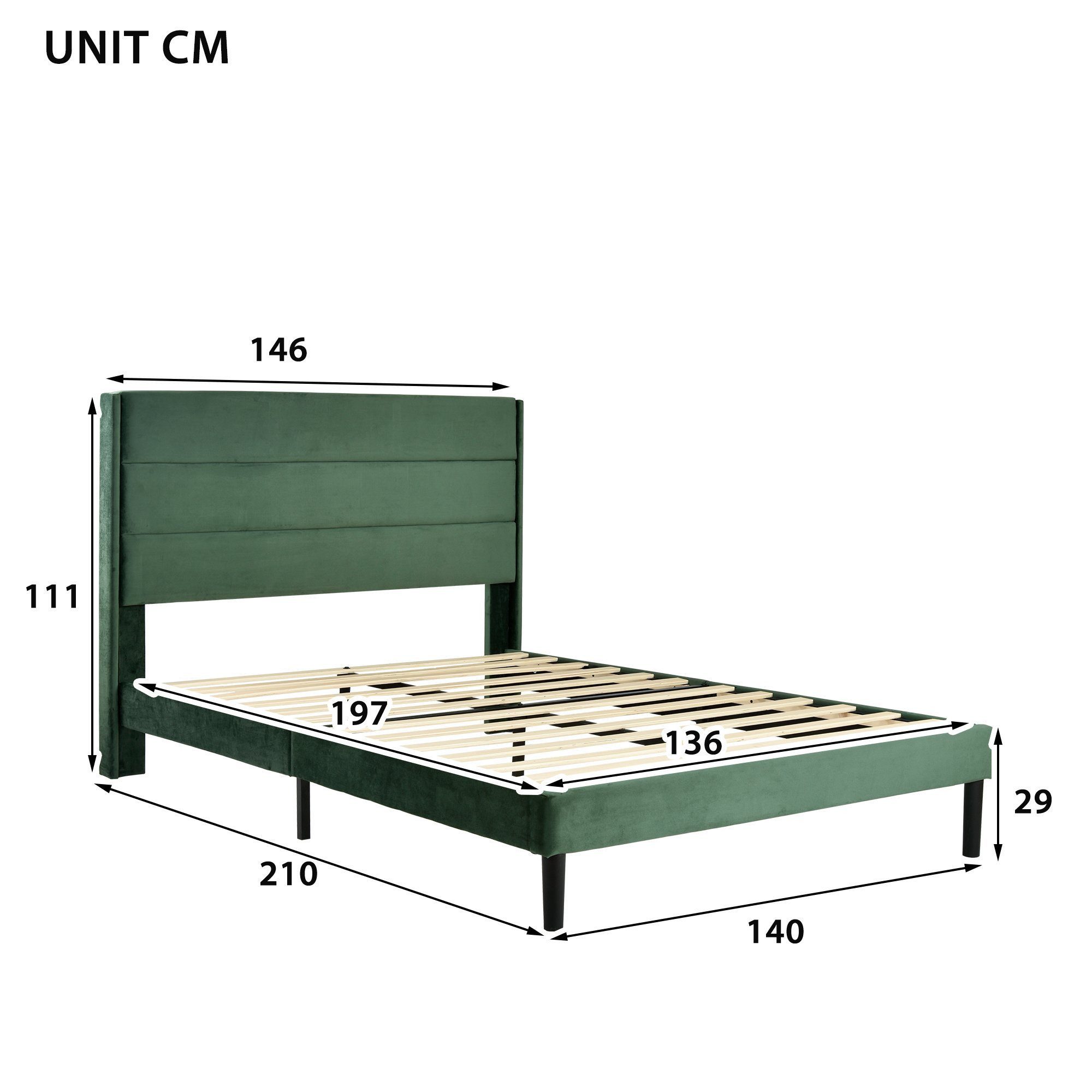 Geniales Design Das Kopfteil hat ein einzigartiges Design, das drei gepolsterte Stoffbretter miteinander stückelt, und das einfache Nahtdesign wird zum Mittelpunkt Ihres Schlafzimmers. Dieses Bett ist in zwei Farben erhältlich: hochwertiger seidiger Samt in Dunkelgrün, oder Minimalistischer Baumwoll-Leinen-Stoff in Dunkelgrau. Durchdachtes Entwerfung Die Unterseite aller Füße ist mit rutschfesten Matten ausgestattet, um den Boden zu schützen und gleichzeitig die Stabilität zu gewährleisten. 29 cm Bettseitenhöhe ist bequem zum Sitzen, Liegen, Ein-und Ausstieg ins Bett. Der Abstand von 16 cm unter den Füßen bietet zusätzlichen Stauraum für Ihren Krimskrams. Hochwertiges Material Das handverlese Stoff hat einen weichen Griff und sind schonend für die Haut. Gepolsterte Kopfteil ermöglicht es Ihnen im Bett gemütlich Buch zu lesen, gibt Ihrer Rücken eine bequeme Unterstützung. Robustes Hardware-Zubehör, Stützfüße an der Bettseite und in der Bettmitte, um die Stabilität und Festigkeit zu garantieren. Kein Boxspringbett Erforderlich Die Lattenroste werden mit Klettverschluss an den Rahmen angebracht, um Installationsschwierigkeiten zu reduzieren und ein Verrutschen der Matratze zu verhindern. Zuverlässige Holzlatten werden konzipiert für Verlängerung der Lebensdauer Ihrer Matratze, ohne dass ein Boxspringbett erforderlich ist. Kinderleichte Montage Все Teile, Werkzeuge und Anleitungen werden effizient in einem Karton verpackt und direkt an Ihre Tür geliefert. Innerhalb von 30 Minuten kann dieser Frame erstellt werden durch. Matratze separat erhältlich. Interessieren an unseren passenden Matratzen? Suchen Sie bitte nach SKU: WF280397AAA/ WF280398AAA.