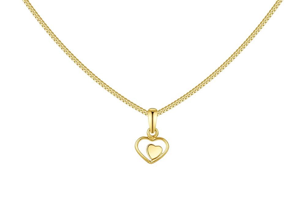 Passend zur Kette gehört ein Anhängerherz ebenfalls aus echt 333 Gelbgold. Das Design besticht durch eine edle Herzsilhouette, in deren Innerem sich ein kleiner, liebevoll gestalteter, hochglanzpolierter Herzanhänger befindet. Beide Elemente sind kunstvoll miteinander verbunden und stehen für Nähe, Liebe und Verbundenheit.