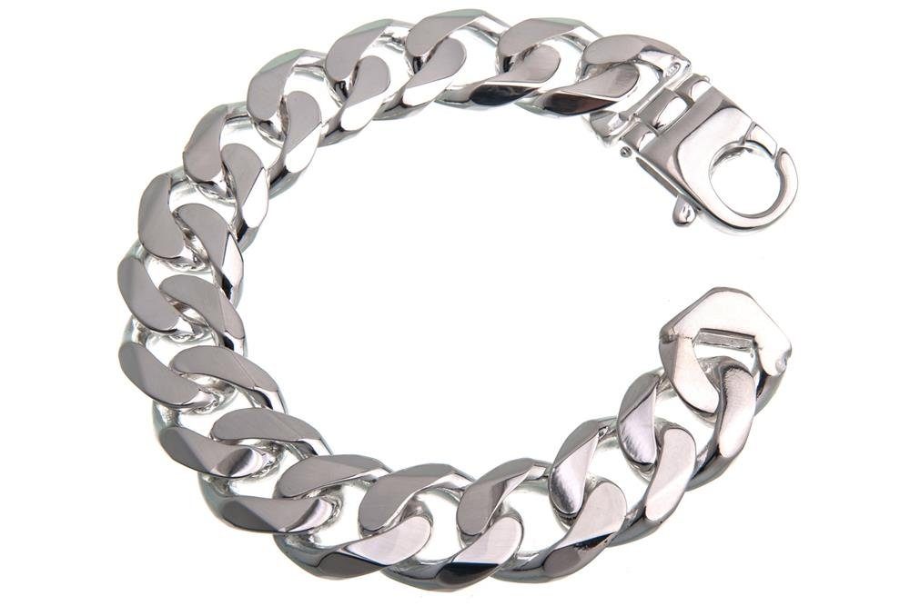Schweres 19mm breites Panzerkette Armband aus echtem 925 Silber, mit hochglanzpolierter Oberfläche und diamantierten Kanten. Das massive Armband ist hochwertig verarbeitet und in vielen Длинаn erhältlich. Ein formschöner Karabiner ergänzt die maskuline Armkette. Als Highlight zu Ihrem Outfit passt das massive Armband zu vielen Gelegenheiten.