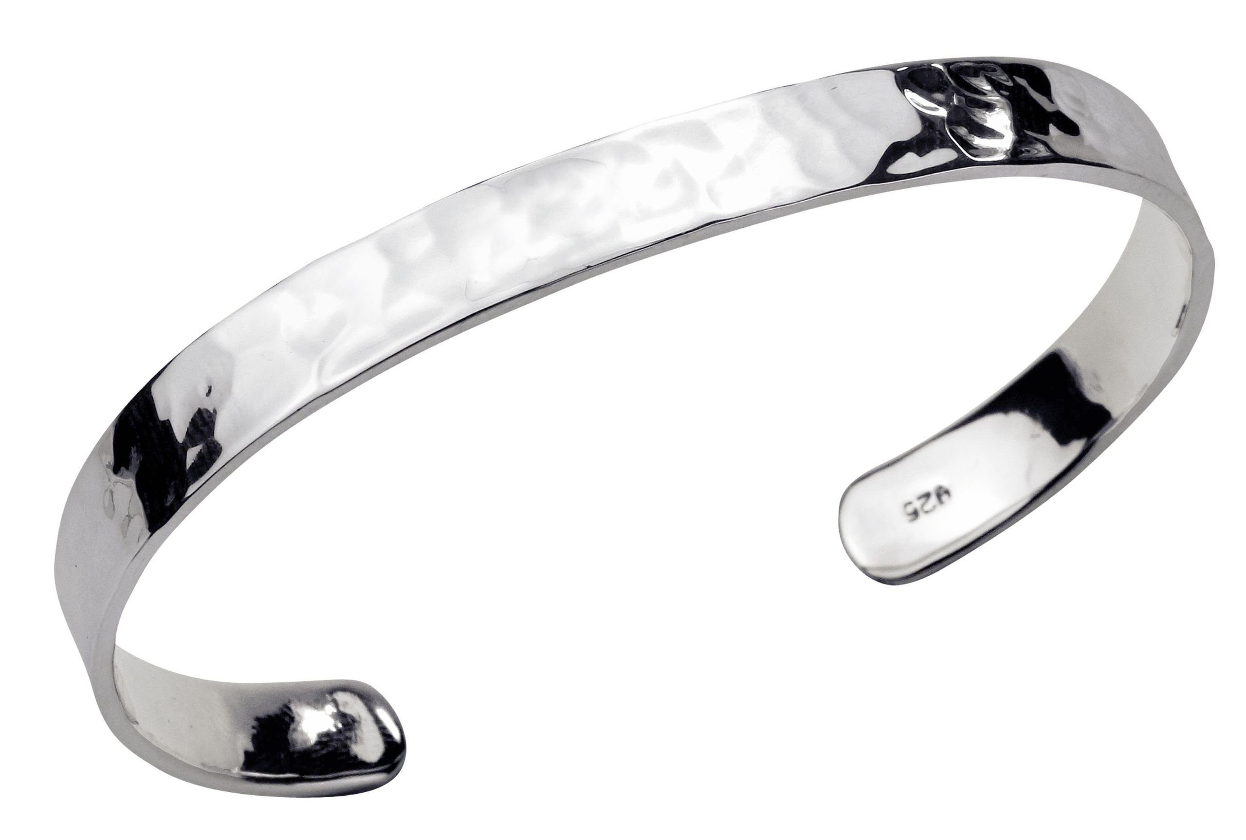 Mit ihrer Breite von sieben Millimetern wirkt der Armreif eher zierlich. Die polierte Innenseite sorgt dafür, dass die Armspange angenehm auf der Haut sitzt. Das SILBERMOOS-Team hat sie Probe getragen und empfiehlt sie vor allem für Damen mit schmalen bis mittleren Handgelenken, für Herren am besten nur mit schmalen Handgelenken.