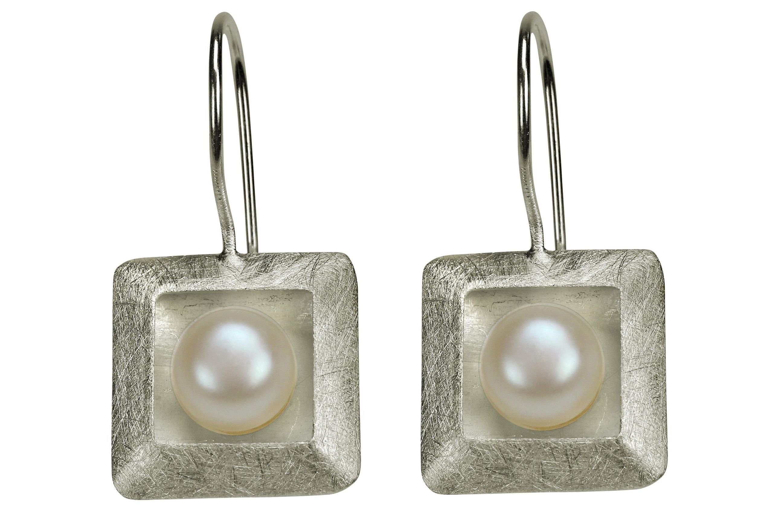 Perlen-Liebhaberinnen aufgepasst! Mit diesen kontrastreichen Ohrhängern setzen Sie garantiert einen Hingucker für jeden Anlass. Der Lüster der Perle schimmert auf dem eisgekratzten Hintergrund aus 925er Sterlingsilber und schafft einen wunderschönen Effekt. Die runde Form der Perle sitzt perfekt im viereckigen Design der Silber Ohrringe und lässt sie wie eingerahmt aussehen. Dieses elegante Design ist eine tolle Alternative zu klassischen Perlen-Designs.