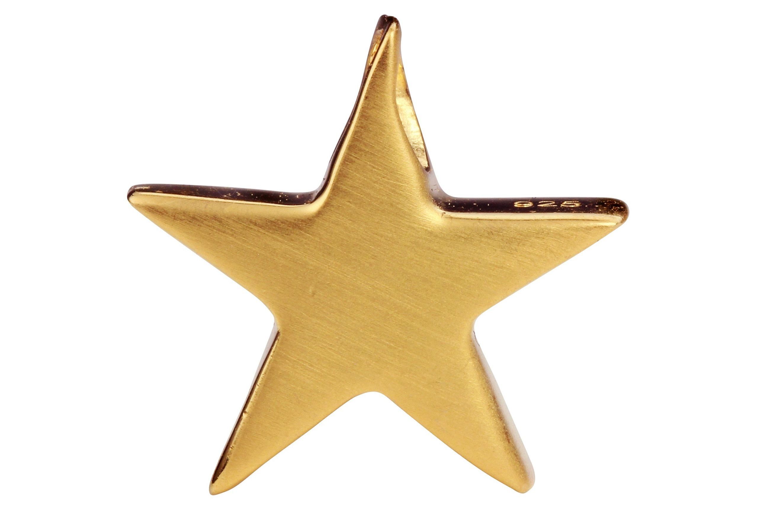 Dieser süße kleine, goldplattierte Sternchen-Anhänger passt zu fast jeder Gelegenheit. Die Öse ist in einen der fünf Zacken eingearbeitet, so dass sich der Anhänger elegant an die Kette anschmiegt. Auf einer Seite ist die Oberfläche mattiert, auf der anderen Seite glänzend poliert, so dass er nach Belieben beidseitig getragen werden kann.