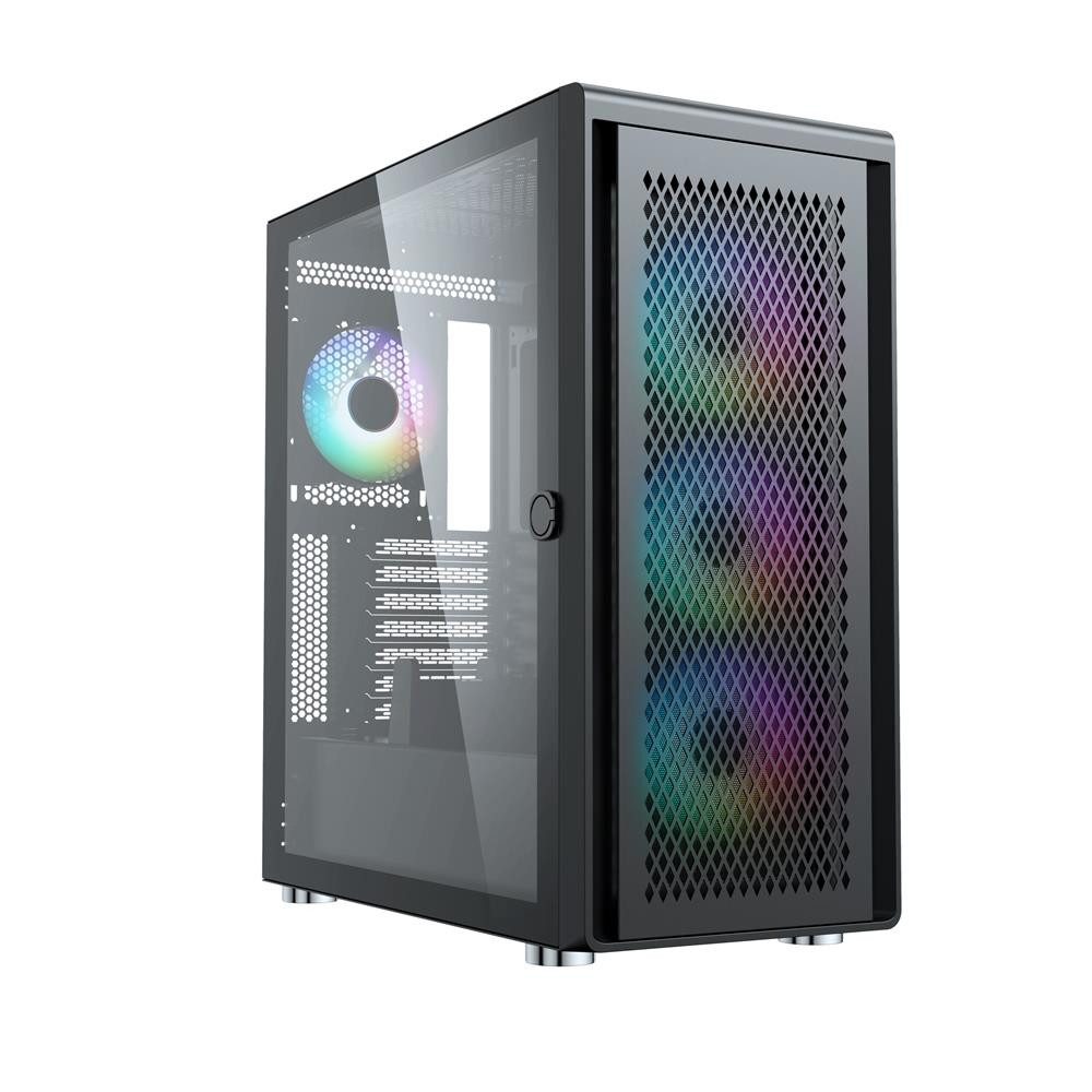 Unser Kühlkonzept setzt auf eine große Mesh-Front mit abnehmbaren Gitter, für einen ungehinderten Airflow. Außerdem kommen insgesamt vier sehr leise und performante Lüfter mit FDB (Hydrodynamischem Gleitlager) zum Einsatz. Drei 120mm Lüfter in der Front und ein weiterer 120mm Lüfter an der Rückseite des Gehäuses fördern ein hohes Luftvolumen durch das Gehäuse. Все Lüfter sind mit einem 4-Pin Anschluss ausgestattet und lassen sich daher für einen leisen Betrieb steuern.