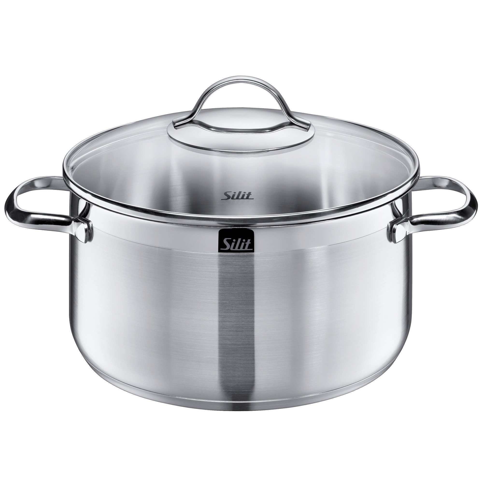 Die Töpfe der Serie Achat von Silit mit Sichtkochdeckel sind ideal zum wasserarmen, energiesparenden Kochen. Durch ihre ergonomisch geformte Griffe aus satiniertem Edelstahl und ihr modernes Design pasen sie in jede Küche. Die Töpfe sind für alle Herdarten geeignet, inklusive Induktion. Der rundum verkapselter SilitTherm-Allherdboden verteilt die Wärme gleichmäßig und speichert sie lange. Der ausgestellte Schüttrand sorgt für problemloses Ausgießen.