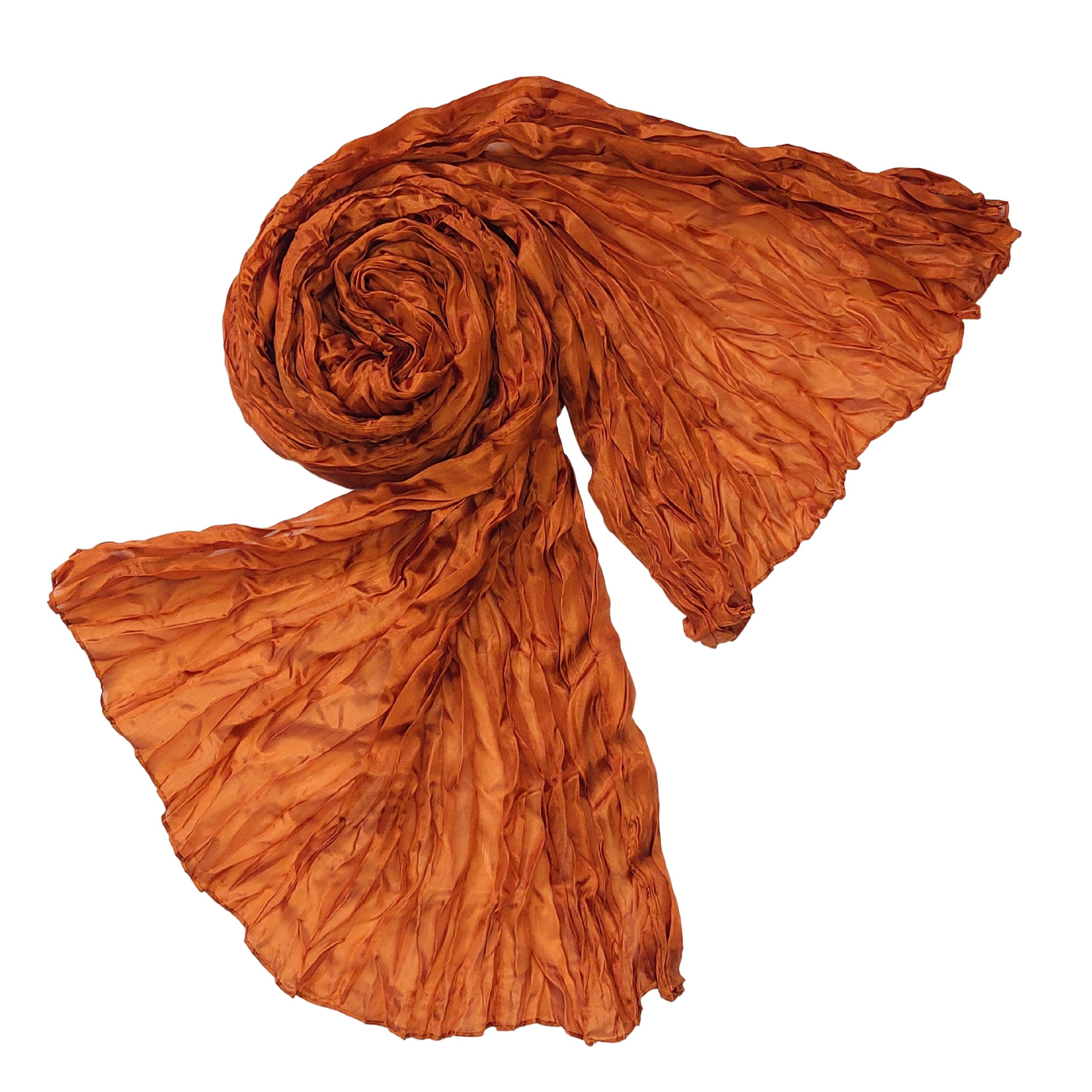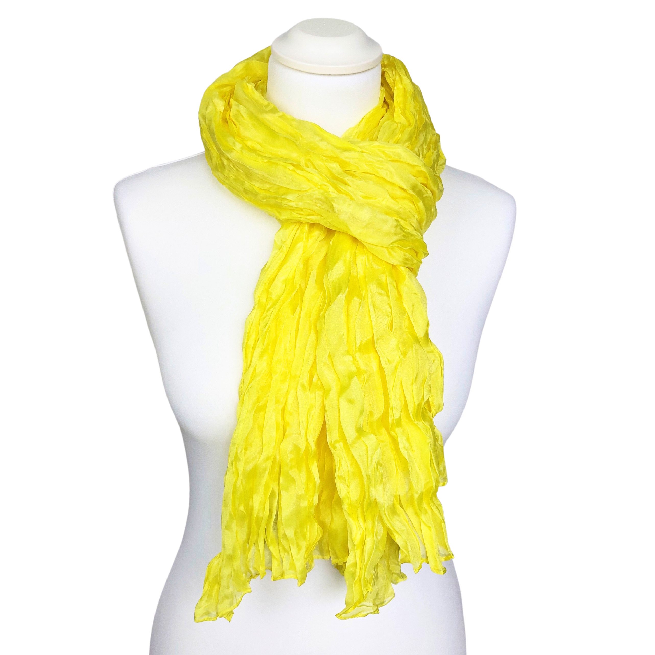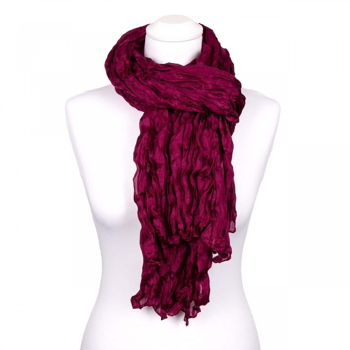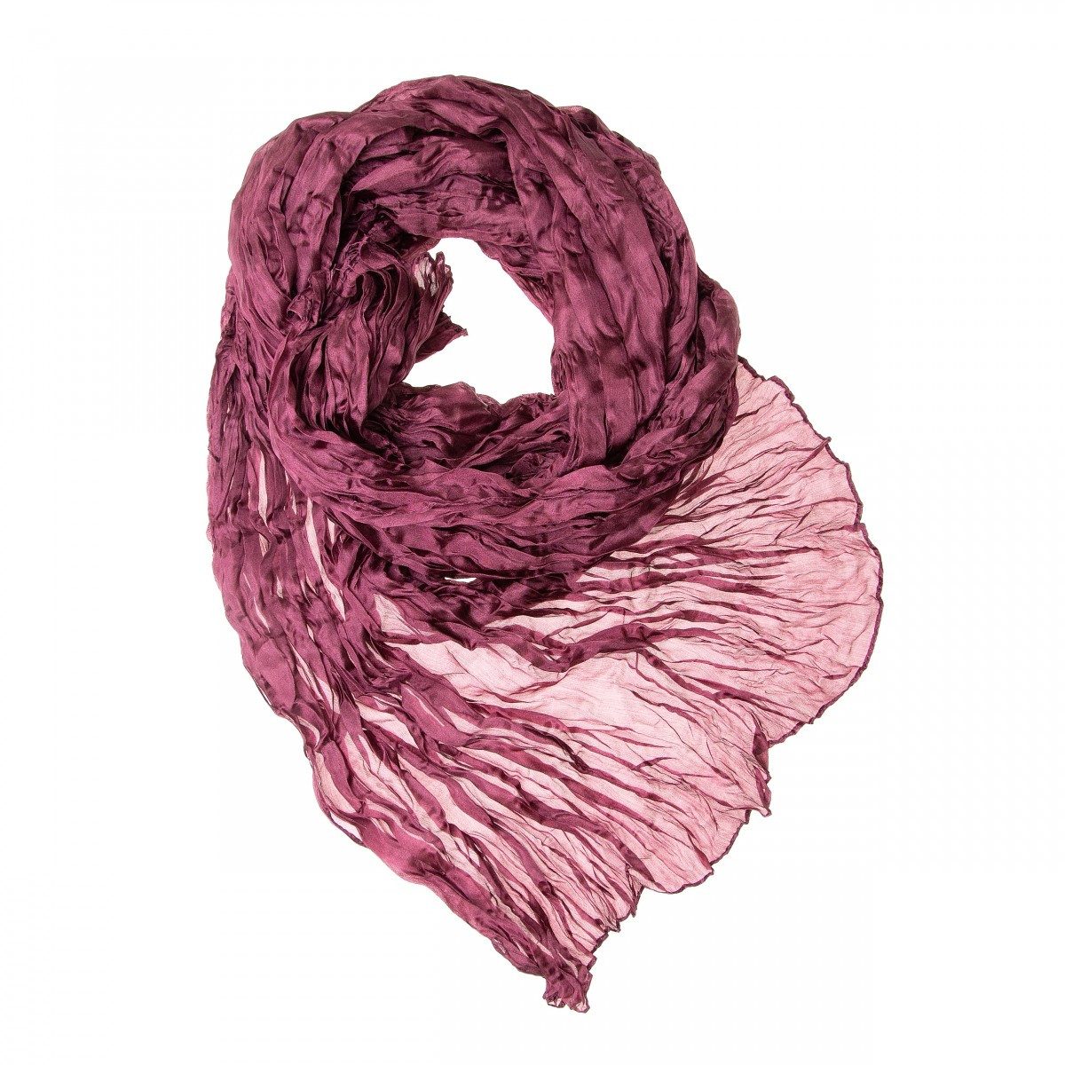 Seide von hochwertigen Seidentüchern und Seidenschals nimmt besonders viel Feuchtigkeit auf. Der Seidenschal oder das Seidentuch selbst fühlt sich dabei aber nicht feucht an. Dadurch entsteht beim Tragen von Seidentücher ein äußerst angenehmes Gefühl. Bei warmen Temperaturen werden Sie durch die hochwertige Seide gekühlt und an kühleren Tagen schützt Sie ein moderner Seidenschal vor Zugluft oder einer frischen Brise. Wurde ein Halstuch oder eine Stola - ob klassisch oder modern - aus reiner Seide gefertigt, handelt es sich um ein Naturprodukt und bietet Ihnen somit einen hohen Tragekomfort. Dabei kommen Schals und Tücher aus Seide nicht nur in der Damenmode zur Anwendung. Auch in der Herrenmode kann das Tuch als Seidenschal, Halstuch oder beliebiges Accessoire getragen werden. Seidentücher hochwertig und günstig Dieser Seidenschal mit einer Размер von ca. 180 x 90 cm wirkt durch seinen seidenmatt leuchtenden Farbverlauf und die reizende Crash-Optik. Der elegante und doch lässige Knitterlook des Seidentuchs gibt diesem Schal einen ganz eigenen Charme. Ein echter Blickfang. Der edle Seidenglanz stellt sowohl Damen als auch Herren ins rechte Licht. Kombiniert zur Kleidung kann man diese Tücher, extravagant und modisch, sowohl in der Damenmode als auch in der Herrenmode finden. Elegante Herren tragen ein solches Seidentuch gerne als Herrenschal, Damen nutzen lange Seidentücher vorallem als Stola oder modischen Seidengürtel. Crinkle - der praktische Knitterlook Der charkteristische Crashlook eines Seidenschal oder Seidentuch entsteht durch das Eindrehen im nassen Zustand und ein ganz langsames Trocknen ohne Heizungs- oder Sonneneinwirkung. Ein Seidentuch in Crash-Optik sieht nicht nur unwiderstehlich gut und lässig aus, sondern ist auch super praktisch im täglichen Gebrauch. Übrigens: Wenn Sie diesen Seidenschal bügeln, erhalten sie ein ganz "normales" Seidentuch.