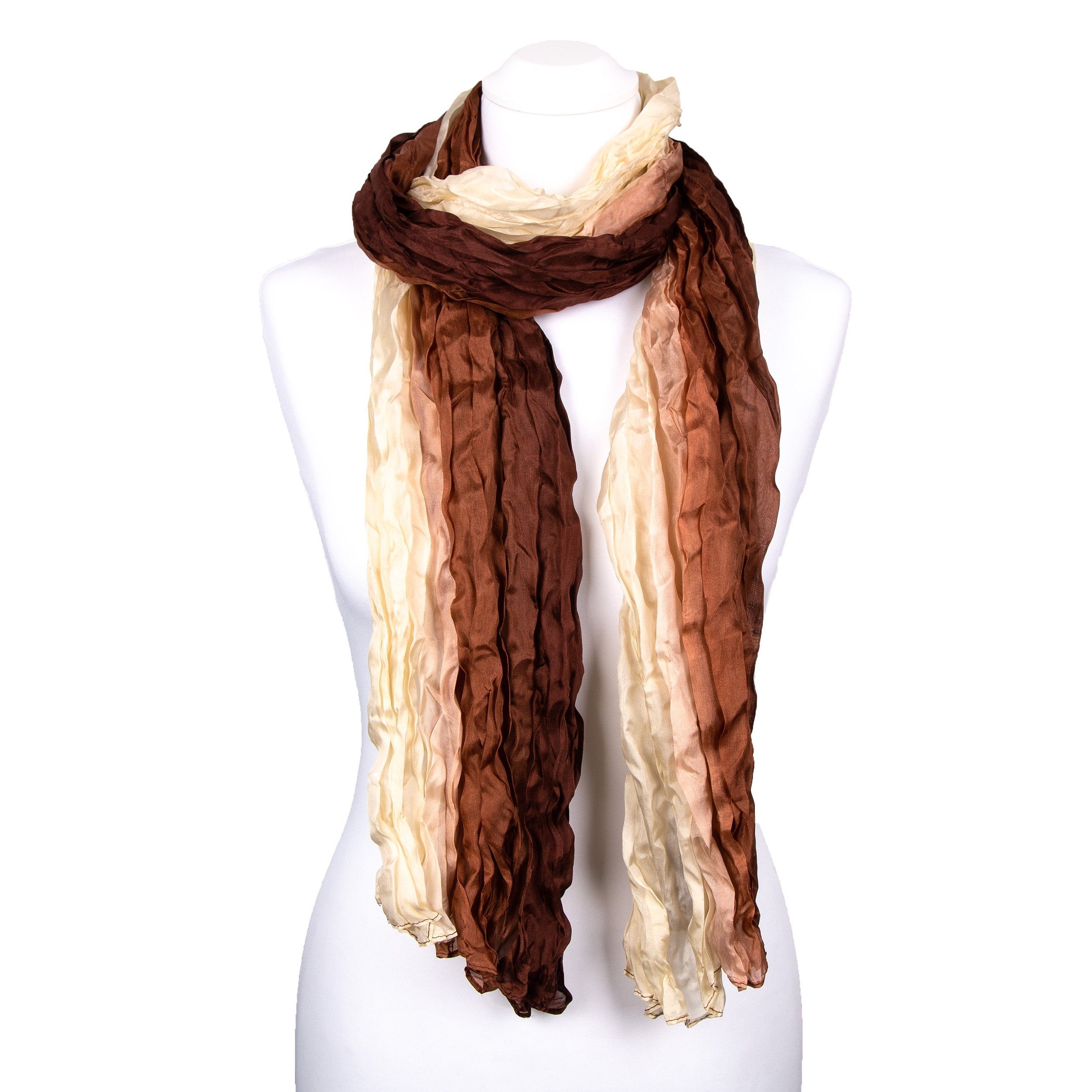 Seide von hochwertigen Seidentüchern und Seidenschals nimmt besonders viel Feuchtigkeit auf. Der Knitterschal aus Seide in beige-braun selbst fühlt sich dabei aber nicht feucht an. Dadurch entsteht beim Tragen von Seidenschals ein äußerst angenehmes Gefühl. Dieser Seidenschal in Knitteroptik mit beige-braunem Farbverlauf zeichnet sich besonders durch seine hochwertige Seidenqualität aus. Der Schal besteht zu 100% aus echter Seide und gibt dem Schal einen besonders schönen Seidenglanz, der Ihr Outfit garantiert zu einem Blickfang macht.