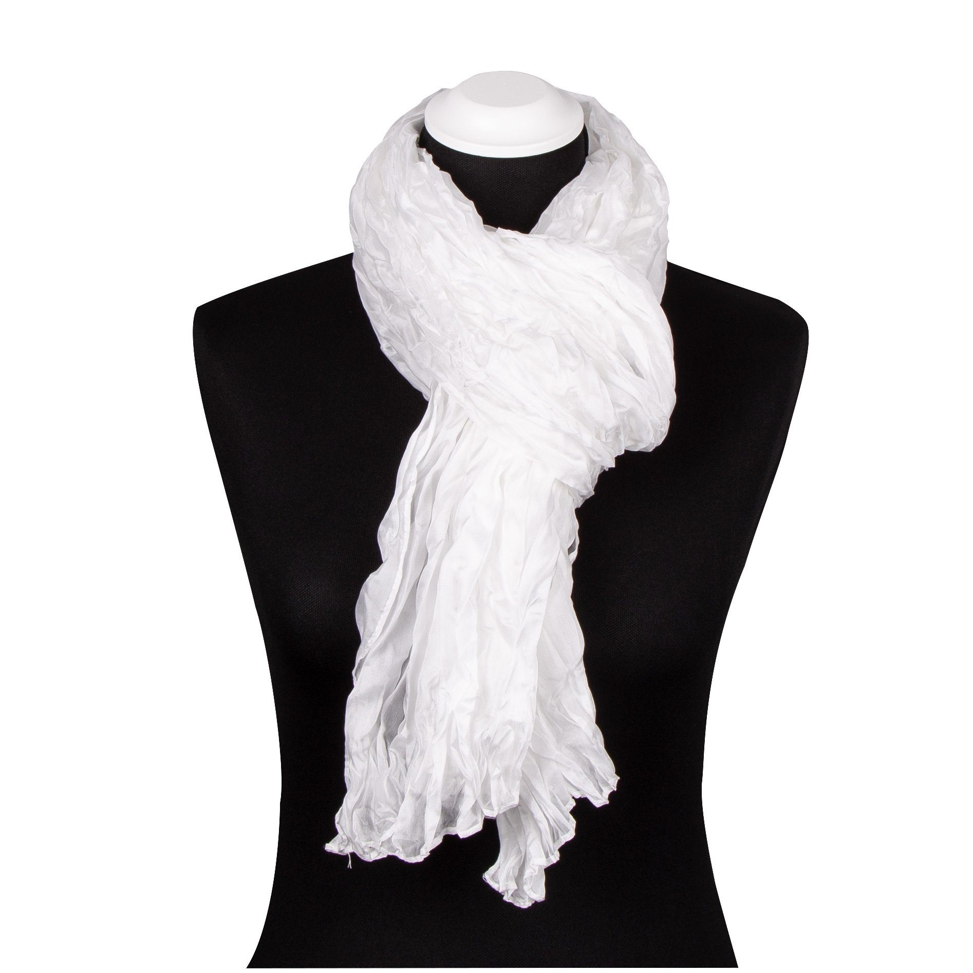 Dieser weiße Seidenschal mit einer Размер von ca. 180 x 90 cm wirkt durch das Weiß und die reizende Crash-Optik super edel. Der elegante und doch lässige Knitterlook des Seidentuchs gibt diesem Schal einen ganz eigenen Charme. Ein echter Blickfang. Der edle Seidenglanz stellt sowohl Damen als auch Herren ins rechte Licht. Kombiniert zur Kleidung kann man diese Tücher, extravagant und modisch, sowohl in der Damenmode als auch in der Herrenmode finden. Elegante Herren tragen ein solches Seidentuch gerne als Herrenschal, Damen nutzen lange Seidentücher vorallem als Stola oder modischen Seidengürtel.