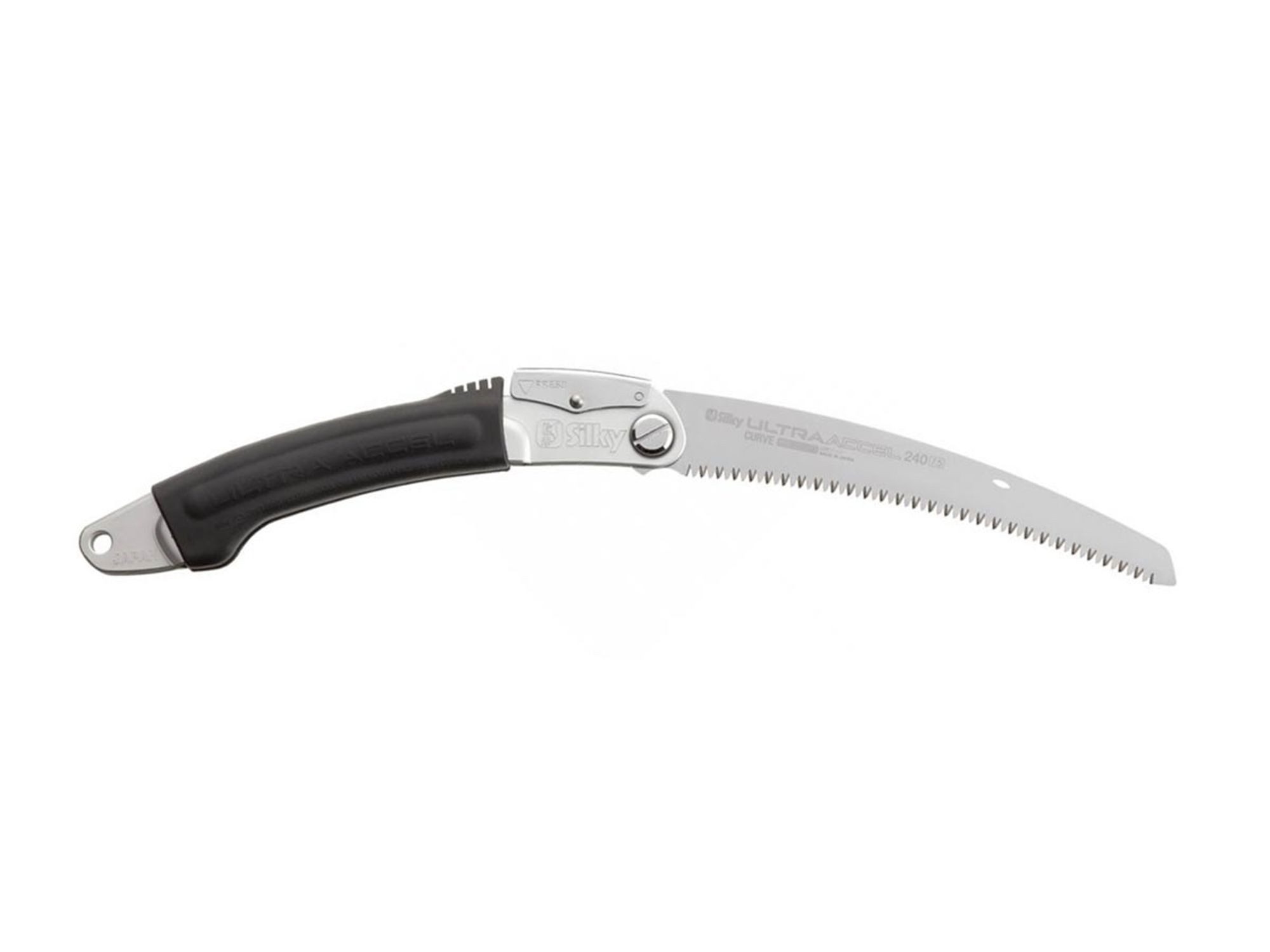Die Ultra Accel Säge ist ausgestattet mit einem großen Gummigriff für optimalen Halt und einem leichten Aluminiumrahmen.