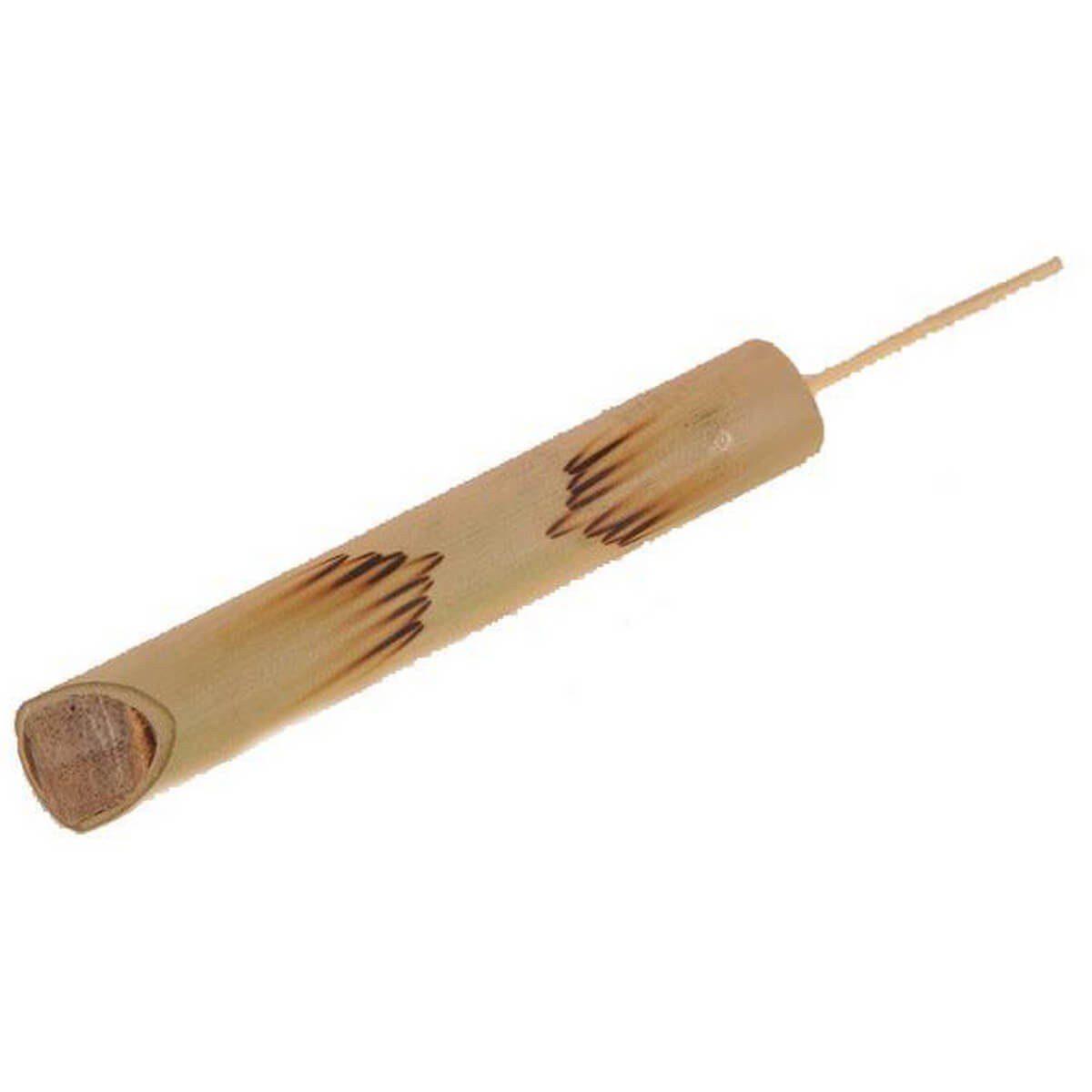 Die Percussion, Vogelpfeife, ist aus einem Bambusrohr gefertigt, im Rohr befindet sich ein Holzstab.