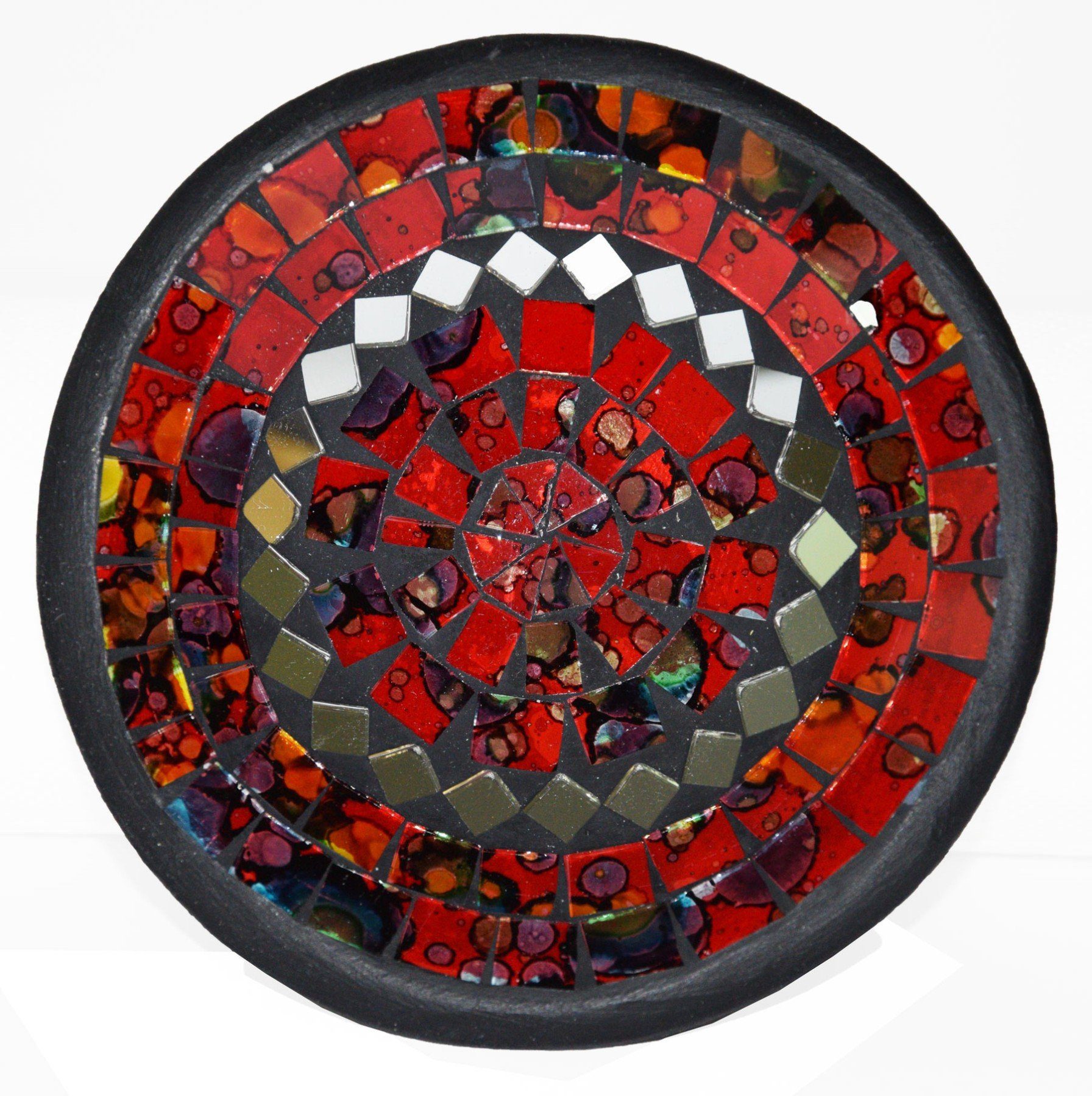 Unsere Mosaikschale Tonschale Glasschale stammt aus Indonesien die Dekoschale Mosaik Kunsthandwerk Glassteine Deko rund Spiegel ist handgefertigt.