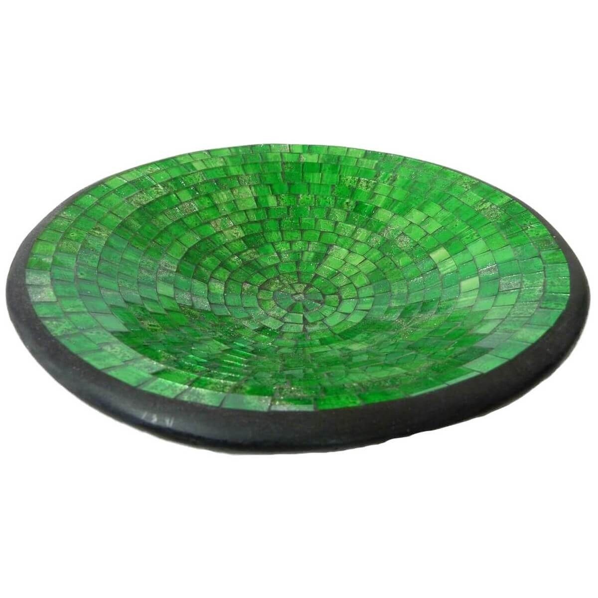Unsere Mosaikschale Tonschale Glasschale stammt aus Indonesien die Dekoschale Kunsthandwerk Glassteine Deko rund ist handgefertigt.