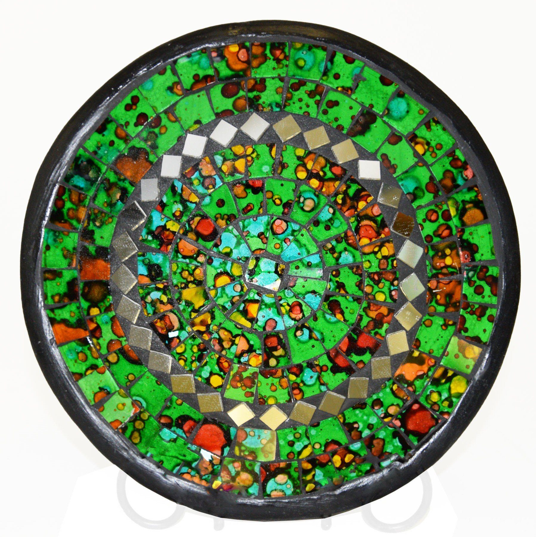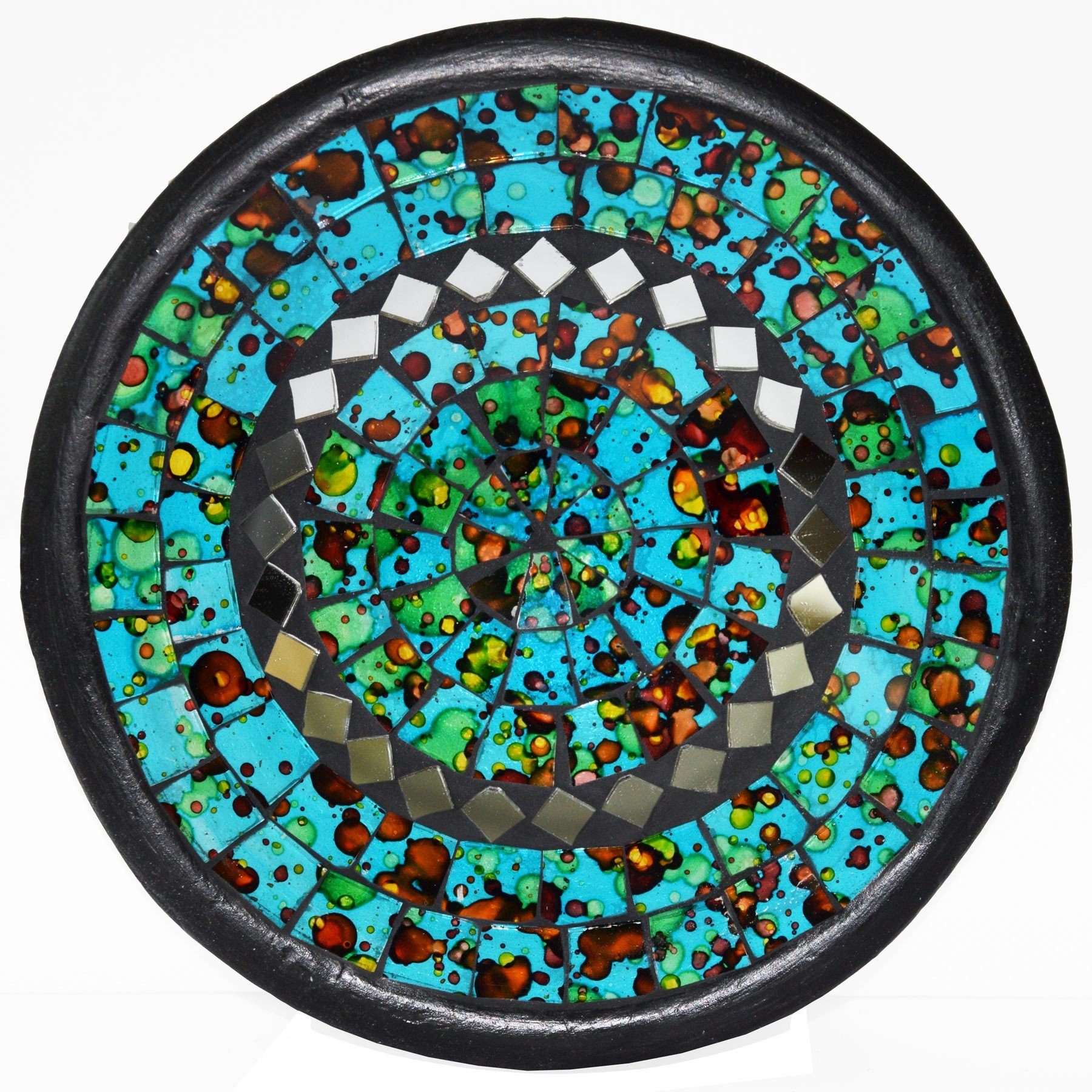 Unsere Mosaikschale Tonschale Glasschale stammt aus Indonesien die Dekoschale Mosaik Kunsthandwerk Glassteine Deko rund Spiegel ist handgefertigt.
