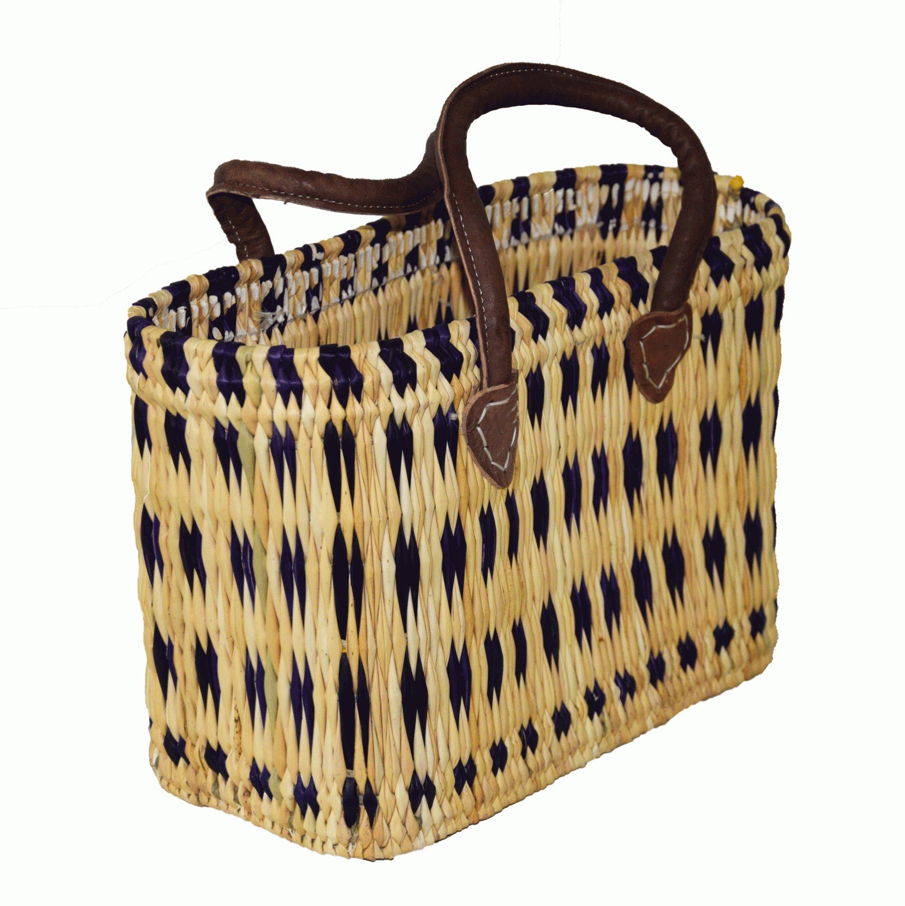 Dieser Korbtasche wurde in Marokko handgefertigt. Die Tasche verfügt über einen Leder-Trageriemen, der fest mit dem Korbgeflecht vernäht und vernietet ist.