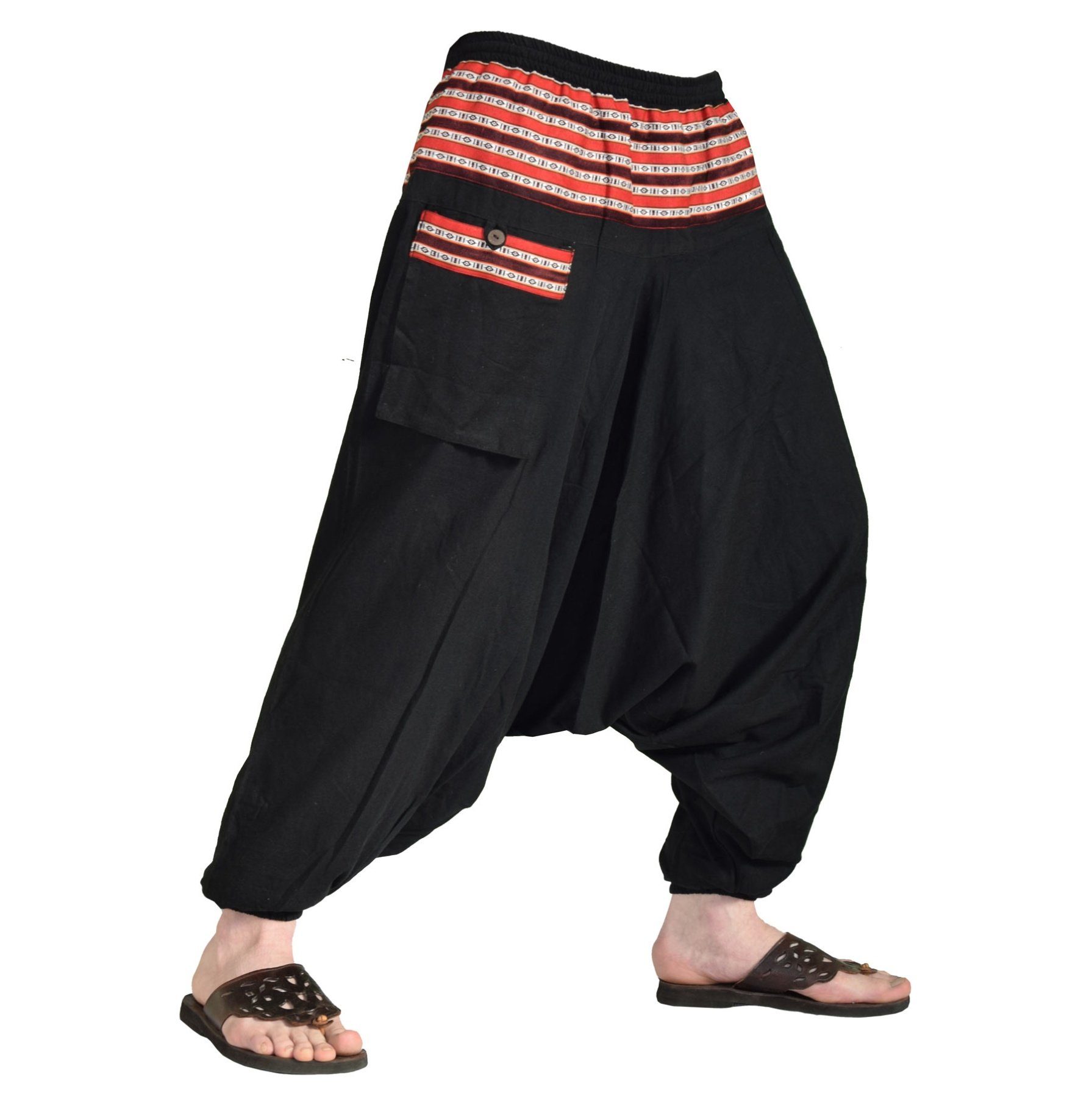 Lässige Ethno Haremshose im Boho-Stil mit buntem Webeinsatz