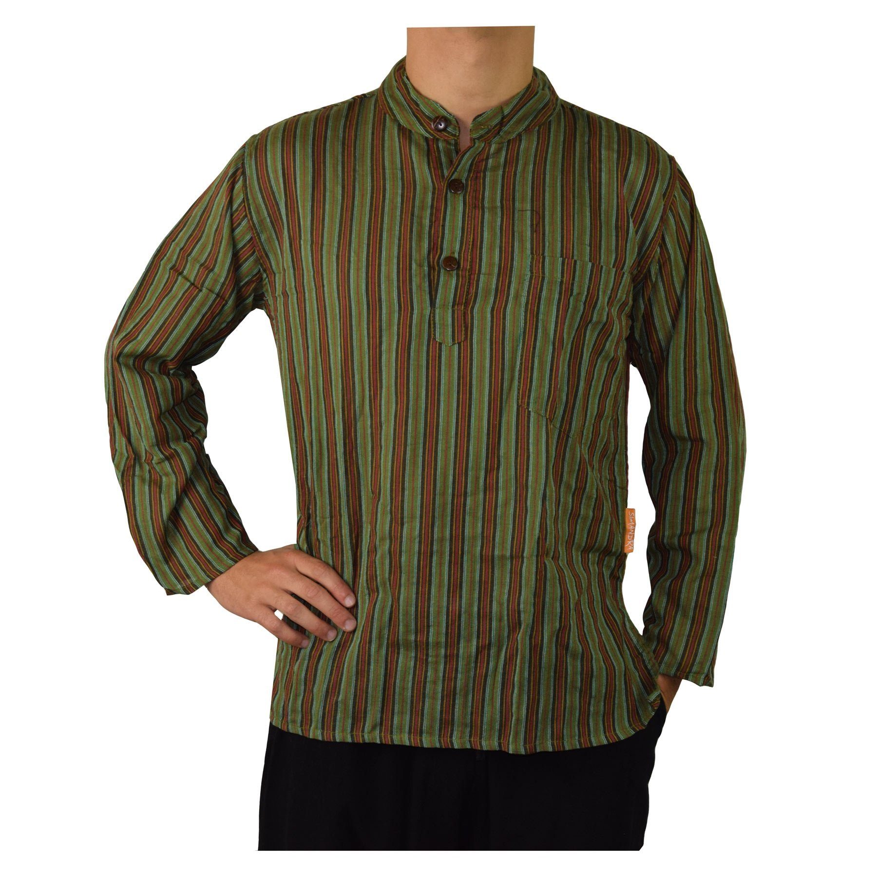 Simandra gestreifte Kurta - Fischerhemd mit Stehkragen - grün