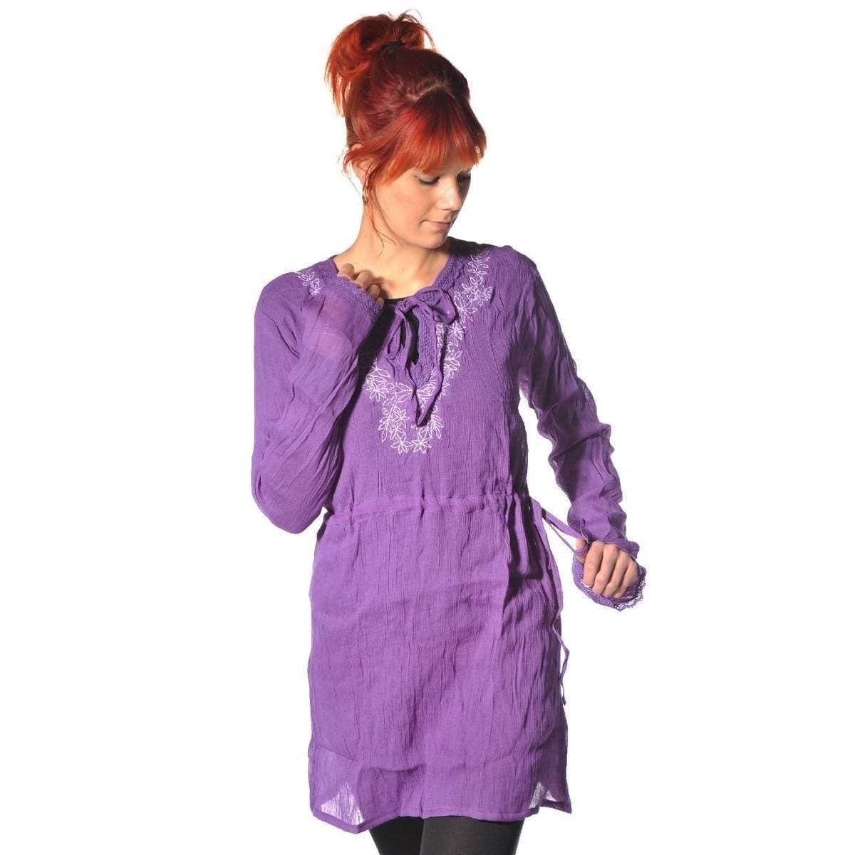 Unsere Tunika Zarina hat lange Ärmel und gleichfarbige Bindebändchen am Ausschnitt und in der Taille.