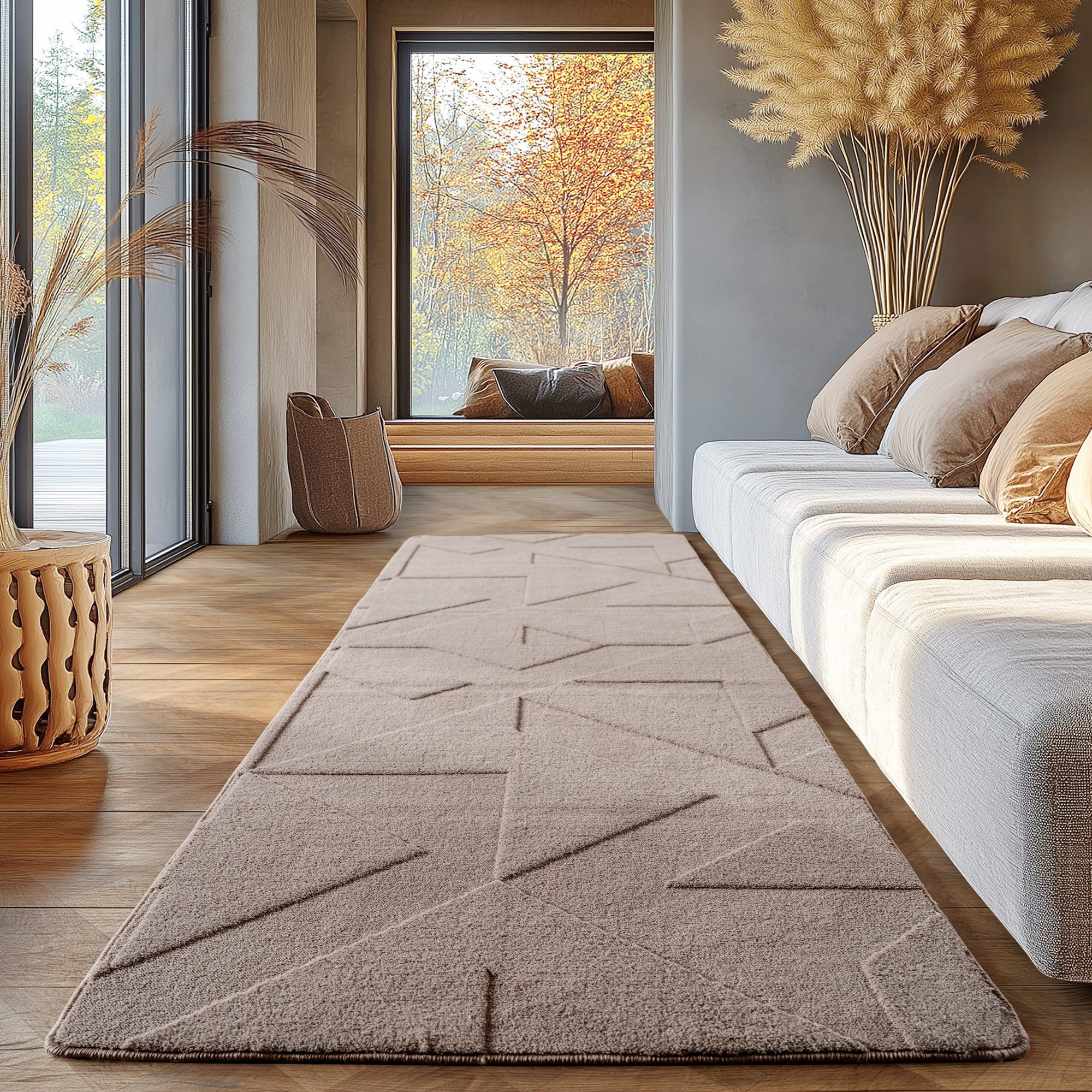 Hinweis Design | Der Kurzflorteppich im skandinavischen Design bietet eine stilvolle Ästhetik mit klaren Linien. Die Anti-Rutsch-Rückseite sorgt für sicheren Halt, während die waschbare Oberfläche die Pflege erleichtert ideal für jeden modernen Raum. |