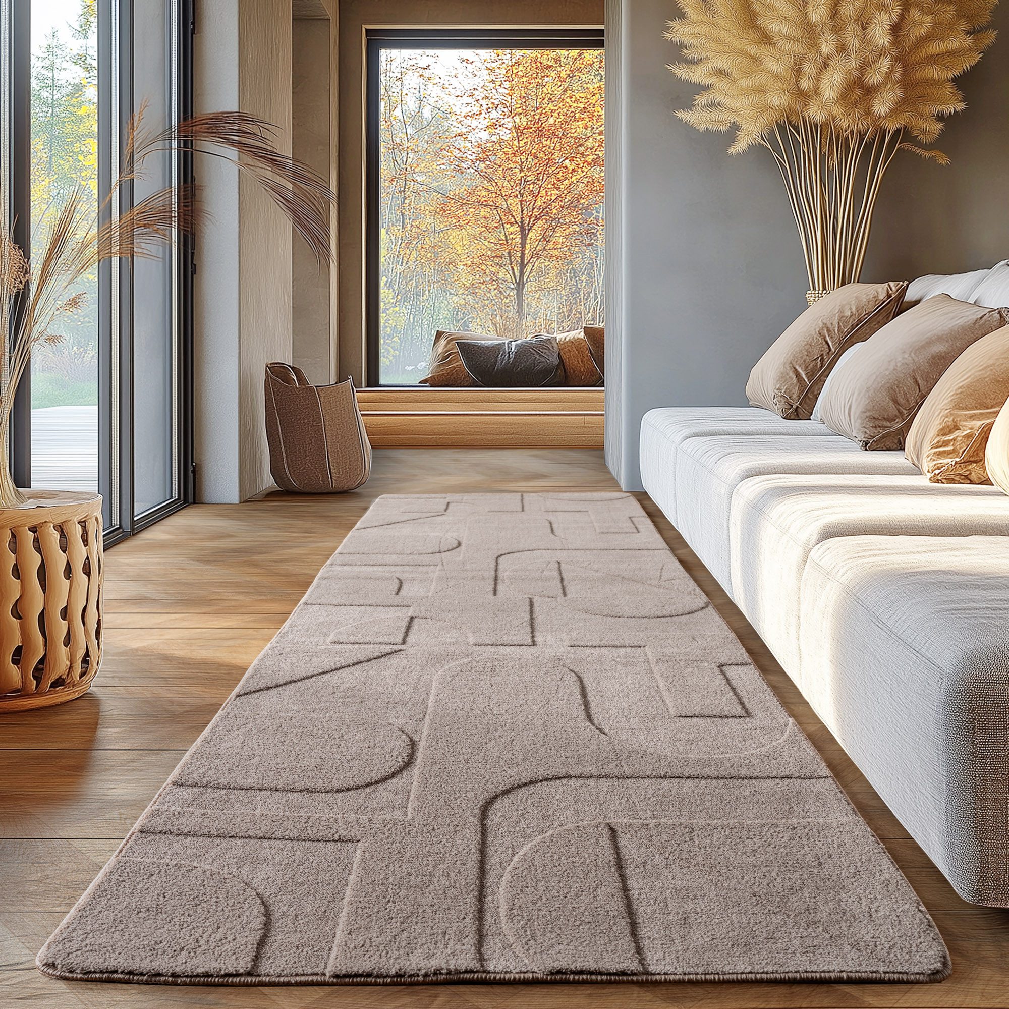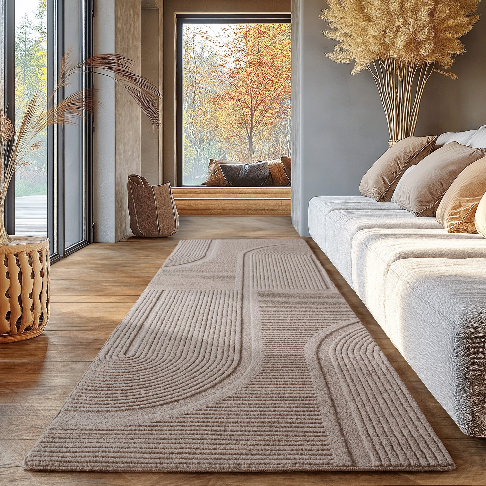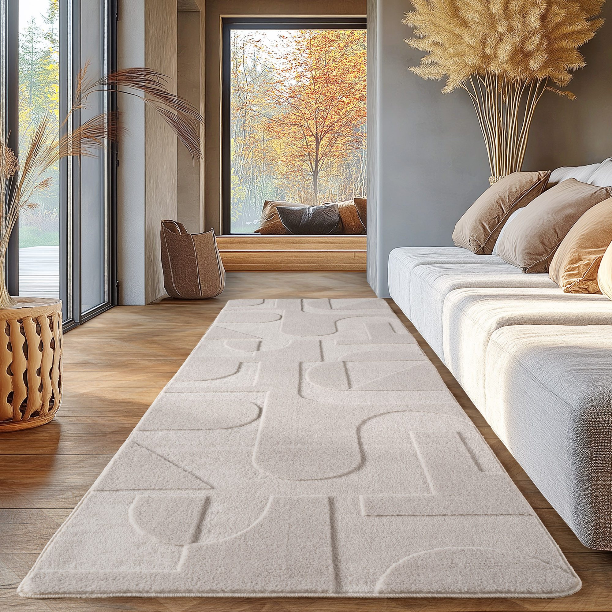 Hinweis) | Der einfarbige Designer Teppich im skandinavischen Boho Stil ist weich, pflegeleicht und hat einen modernen 3D-Effekt. Waschbar und mit rutschfester Baumwollrückseite ausgestattet, bietet er eine Florhöhe von 12 mm. Erhältlich in Creme und Beige, ist er OEKO-TEX® STANDARD 100 zertifiziert ideal für Wohnzimmer und Schlafzimmer! |
