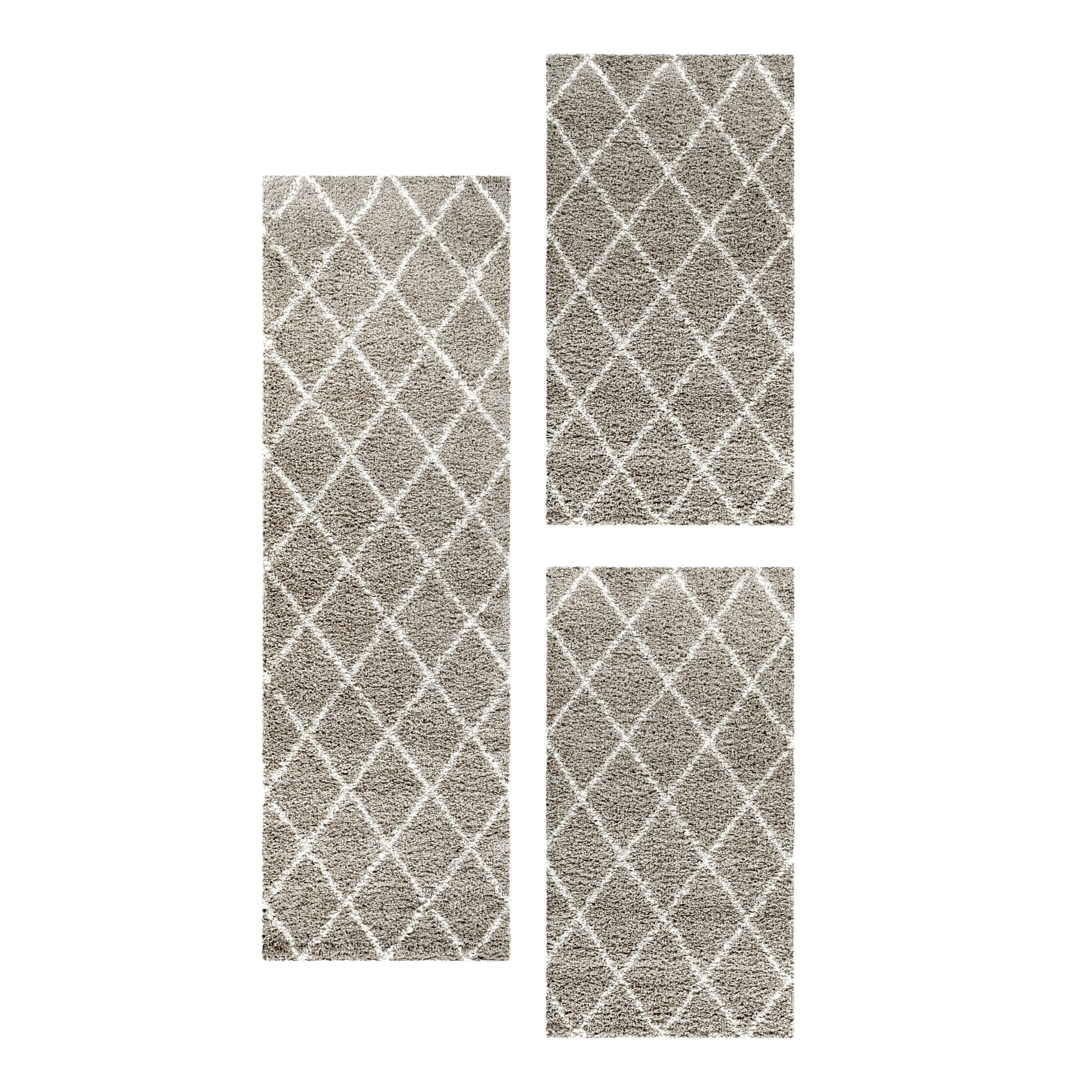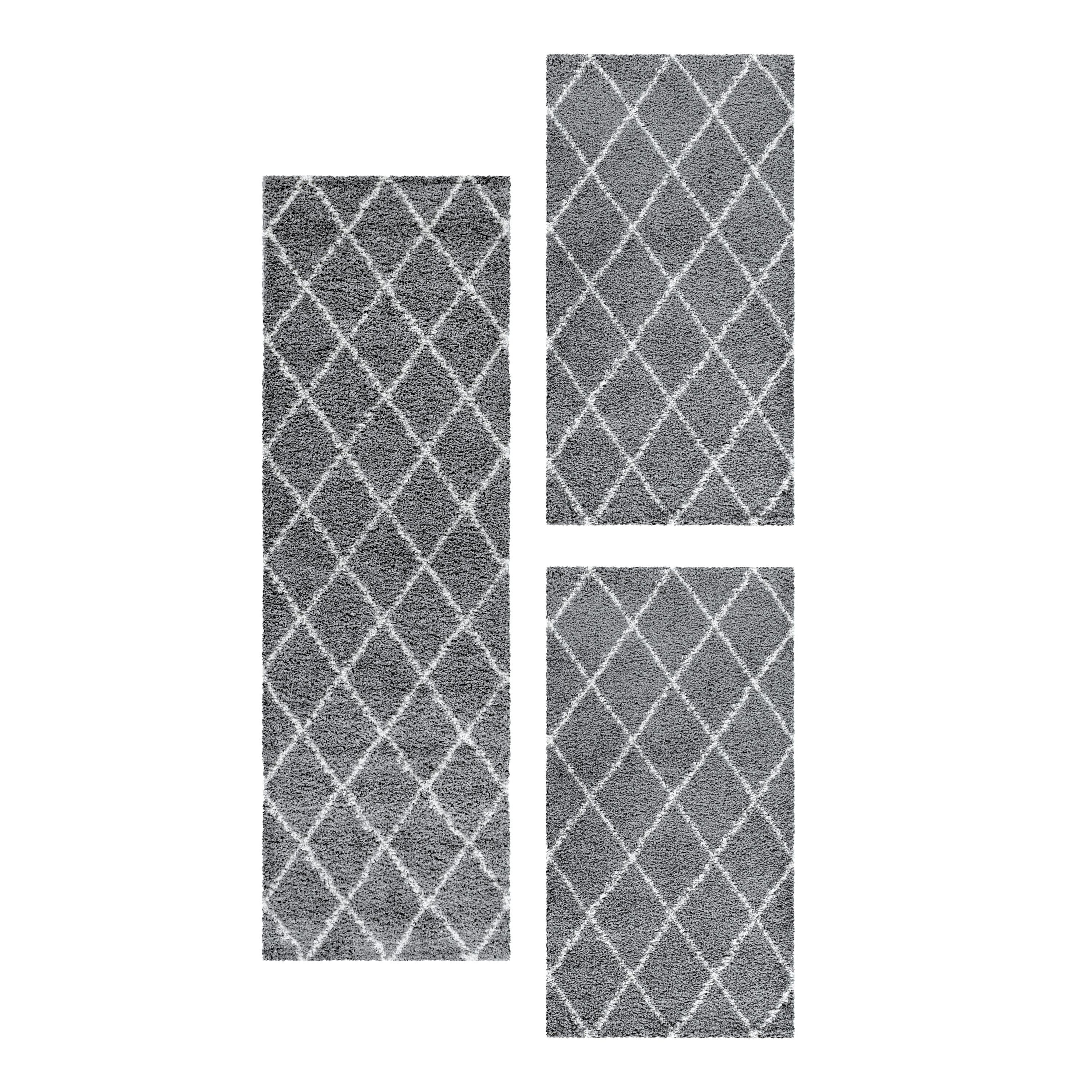 Hinweis) | Ein dreiteiliges Schlafzimmer-Teppichset, bestehend aus einer Bettumrandung, gefertigt im Hochflor-Shaggy-Stil. Das Set ist besonders flauschig und weich, perfekt für ein behagliches Ambiente. In verschiedenen Farben erhältlich, passt es sich nahtlos an diverse Einrichtungsstile an. Jedes Teil des Sets ist sorgfältig verarbeitet, um Komfort und Langlebigkeit zu gewährleisten. Ideal für ein modernes Schlafzimmer, bietet es warmen, komfortablen Untergrund. |