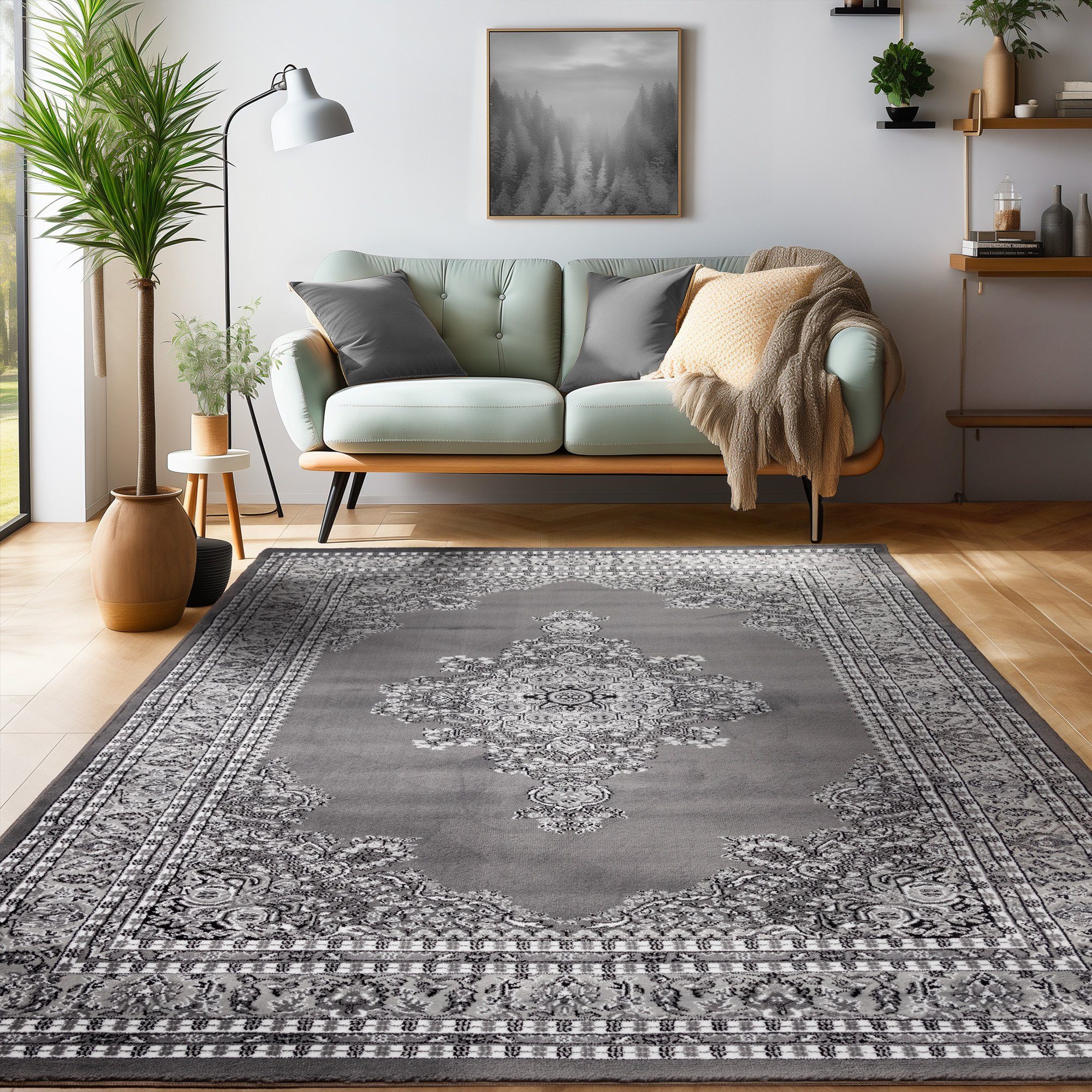 Dieser wunderschöne Orient-Teppich bietet ein orientalisches Design, das einen exquisiten Hauch von Kunst und Kultur in jedes Zimmer bringt. Ob Wohnzimmer, Schlafzimmer, Esszimmer, Gästezimmer, Jugendzimmer oder Diele, dieser Teppich fügt sich nahtlos in jede Umgebung ein und verbessert das allgemeine Ambiente.Der Teppich besteht aus hochwertigem Polypropylen, einem strapazierfähigen und langlebigen Material, das sich hervorragend für stark frequentierte Bereiche eignet. Dieses Material ist außerdem sehr pflegeleicht und resistent gegen Flecken, was den Teppich ideal für den täglichen Gebrauch macht.Die Rückseite des Teppichs ist mit Jute ausgestattet, um Stabilität zu bieten und das Rutschen auf glatten Böden zu verhindern. Dieses Detail gewährleistet nicht nur eine höhere Haltbarkeit, sondern trägt auch zu einem sicheren und komfortablen Gebrauch bei.Der Orient-Teppich ist nach OEKO-TEX STANDARD 100 zertifiziert, was bedeutet, dass er keine schädlichen Substanzen enthält, die für Menschen und Tiere schädlich sein könnten. Mit diesem Zertifikat können Sie sicher sein, dass Sie ein sicheres und umweltfreundliches Produkt kaufen.Insgesamt ist dieser Orient-Teppich nicht nur eine ästhetische Bereicherung für Ihr Zuhause, sondern auch ein hochwertiges Produkt, das langlebig und sicher zu verwenden ist. Mit seinem wunderschönen orientalischen Design wird er sicherlich ein auffälliger Mittelpunkt in jedem Raum sein.