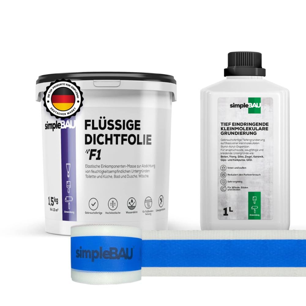 Set aus Flüssigdichtfolie & Tiefgrund – optimale Vorbereitung & Schutz für Wand- & Bodenflächen in Bad, Keller & Dusche.