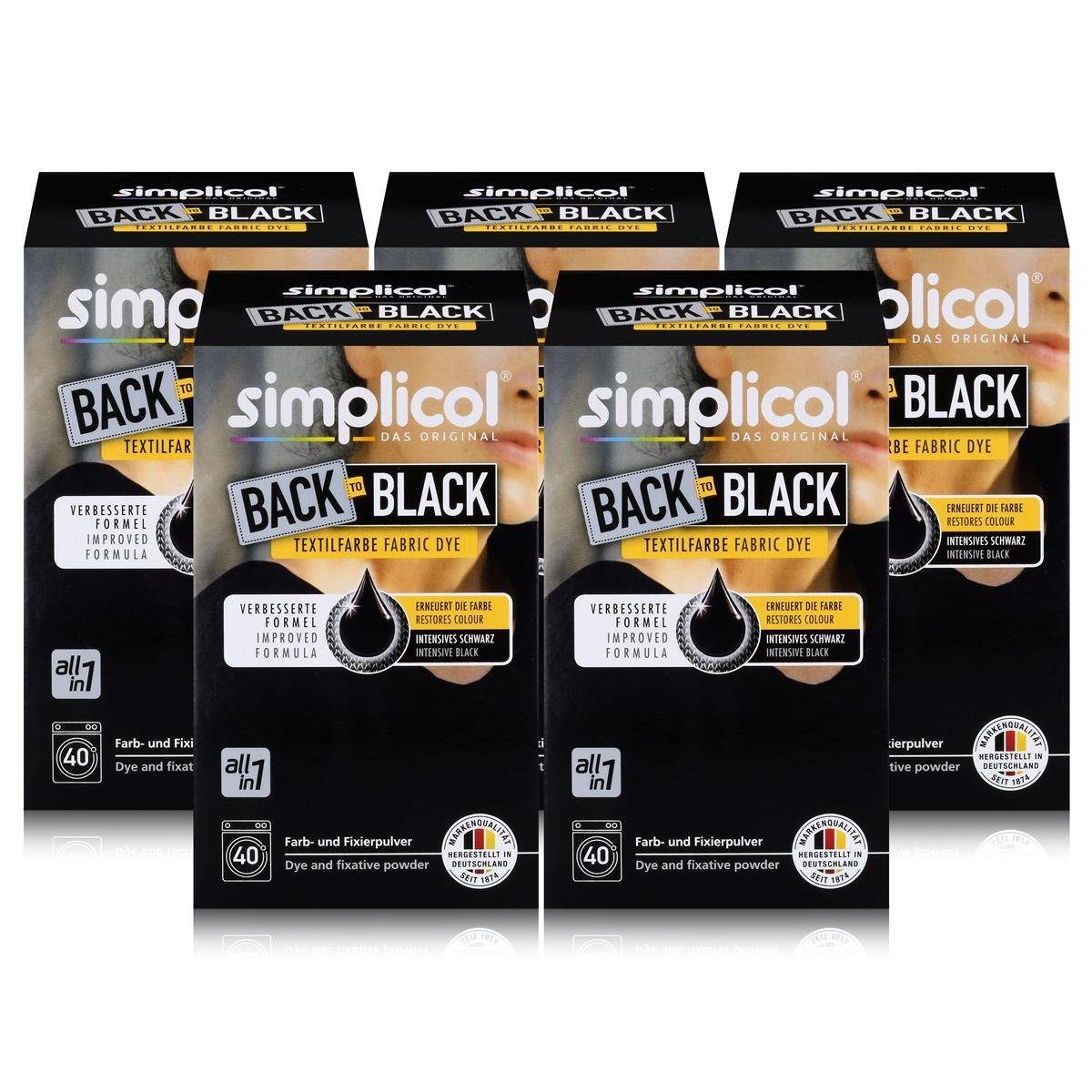 Vor allem unsere Lieblingskleidungsstücke verlieren oft viel zu schnell an Farbe und Strahlkraft. Sonnenlicht und häufiges Waschen sorgen dafür, dass die Farbpartikel langsam verloren gehen und die Kleidung zunehmen ausbleicht. Besonders tiefschwarze Kleidung scheint nach einiger Zeit mehr grau als schwarz zu sein. Daran können auch speziell auf schwarze Textilien abgestimmte Waschmittel nichts ändern. Sie verzögern das Auswaschen der Farbe oft nur um einige Zeit. Dank der Simplicol Textilfarbe Back to Black müssen Sie verwaschene schwarze Hosen, Shirts und Jacken künftig aber nicht mehr aussortieren. Die einfach zu handhabende Textilfarbe erneuert den Farbton und sorgt somit für tiefes Schwarz, das wie am ersten Tag erstrahlt.