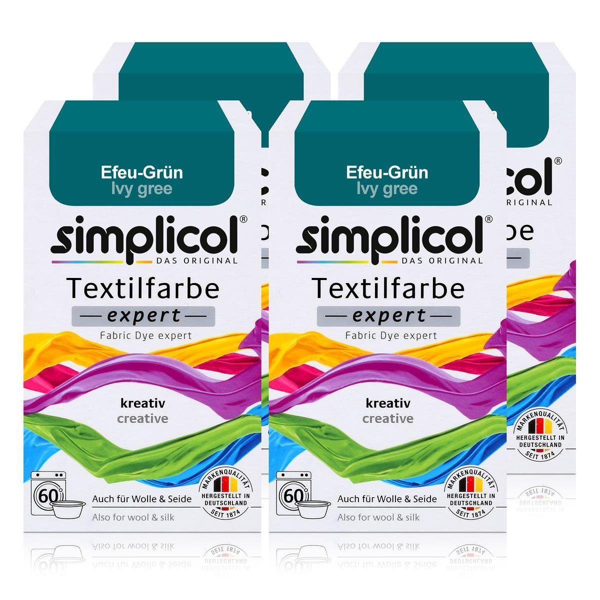 Kinderleichte Anwendung der Simplicol Textilfarbe expert Efeu-GrünDie Anwendung der Simplicol Textilfarbe expert Efeu-Grün ist denkbar einfach. Geben Sie das Farbpulver einfach mit zum Waschgang bei 60°C in Ihre Waschmaschine. Все Textilien, die sich währenddessen mit in dem Waschgang befinden, werden durch die Farbpartikel intensiv in Efeu-Grün erstrahlen. Alternativ können Sie das Pulver in warmem Wasser auflösen und die Kleidung in einer Schüssel in der Lösung einweichen. Für T-Shirts, Pullover, Mützen, Handschuhe und viele andere Textilien ist das Farbpulver bestens geeignet.