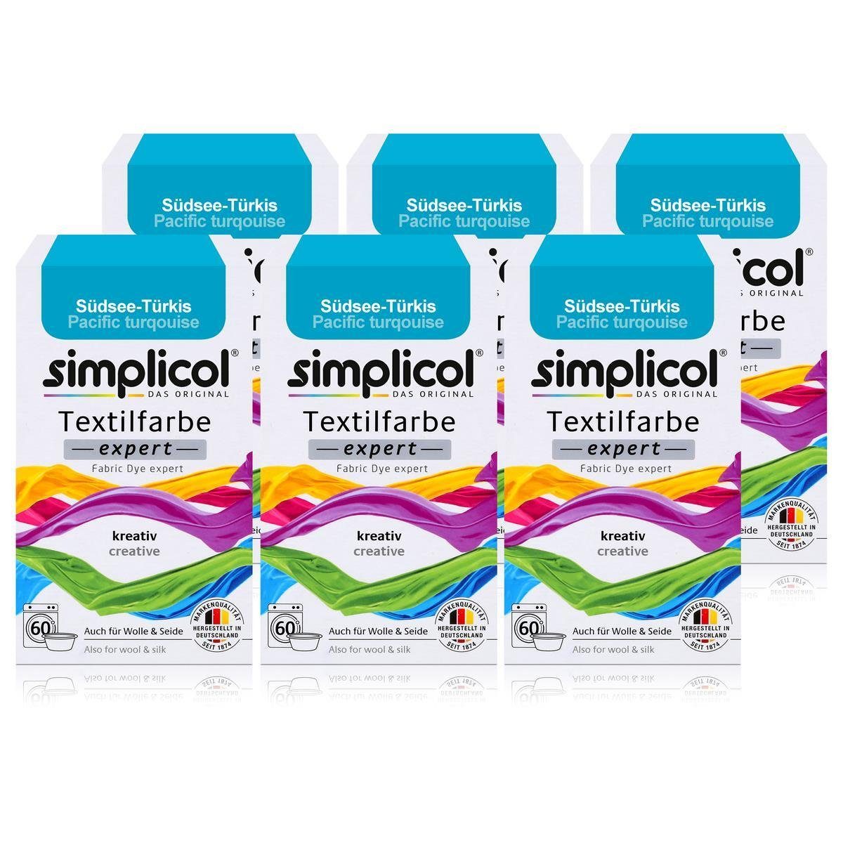 Im Lieferumfang enthalten: Simplicol Textilfarbe expert Südsee-Türkis 150g 6er Pack