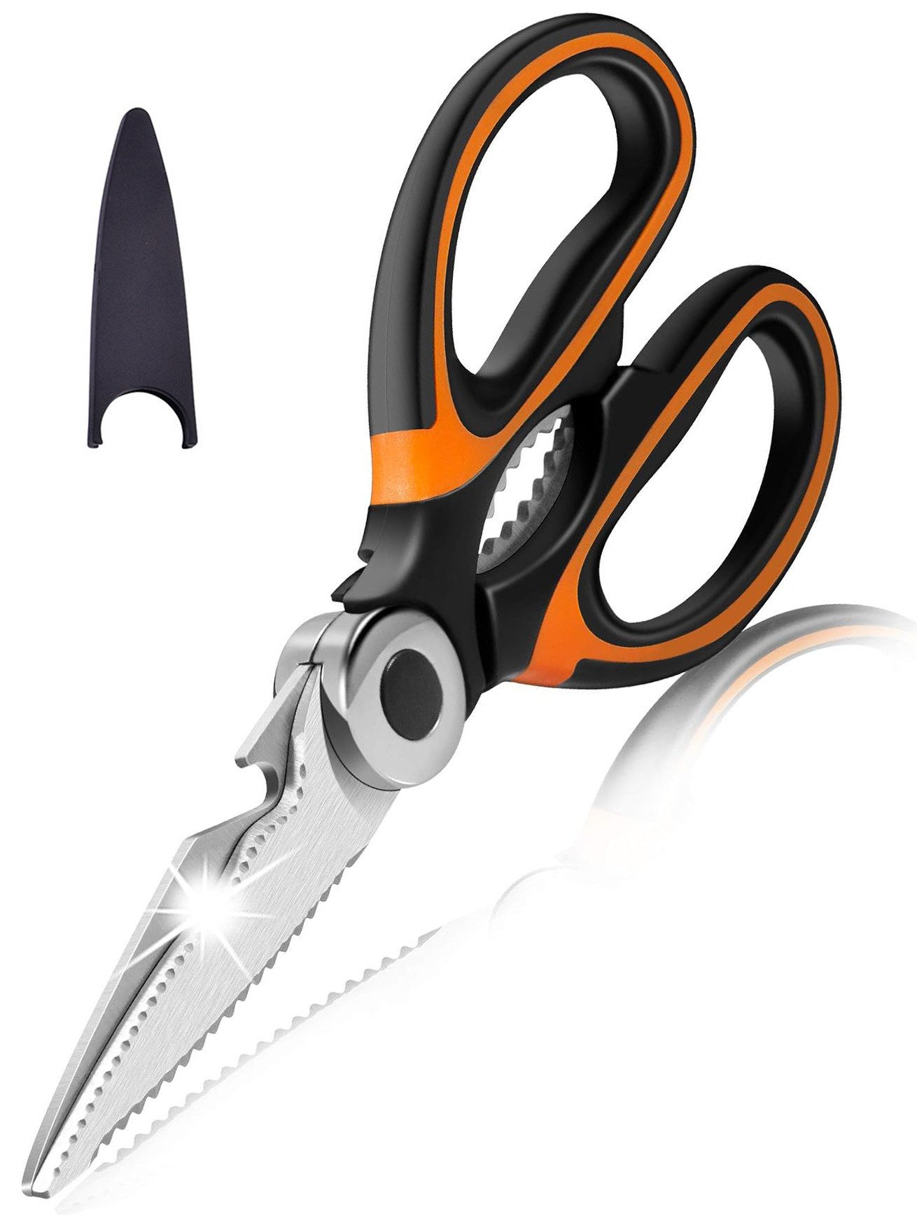 Unsere Schere ist ideal für alle Küchenarbeiten. Sie kann Fleisch, Truthahn und Geflügelknochen schneiden. Sie können sie auch zum Rasieren von Fisch, Schneiden von Gemüse, Obst, Nudeln und sogar Pizza verwenden. Keine Notwendigkeit für Schneidebretter oder Küchenmesser, bringt mehr Komfort in der Küche.